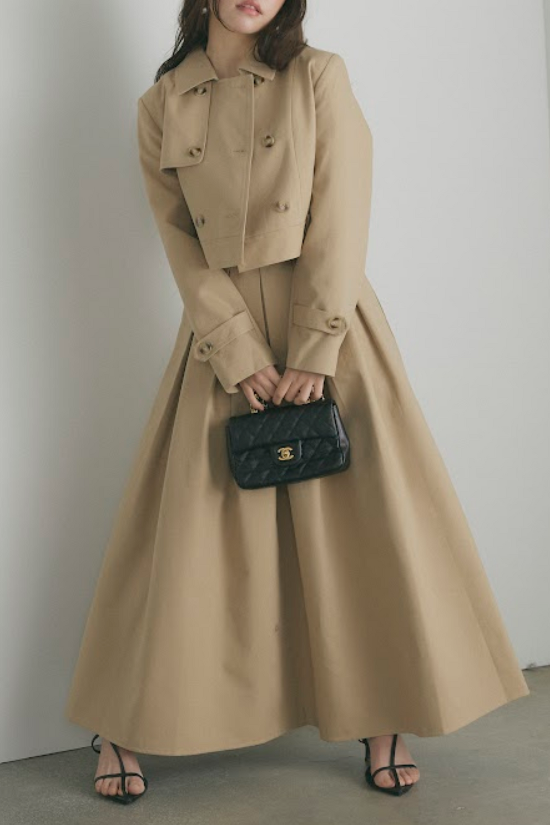 トレンチコート&Vネックノースリーブワンピセットアップ