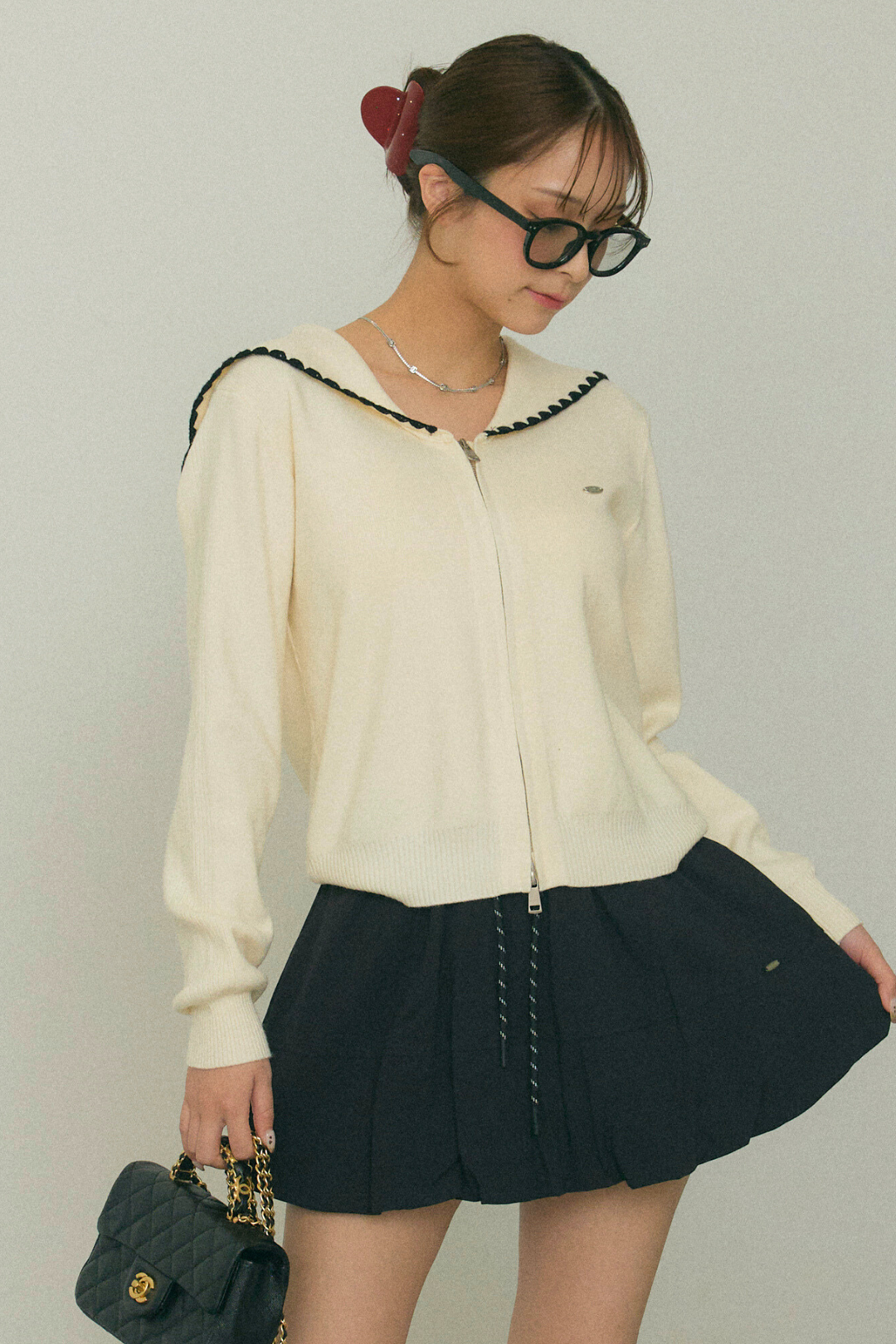 セーラーカラージップニット