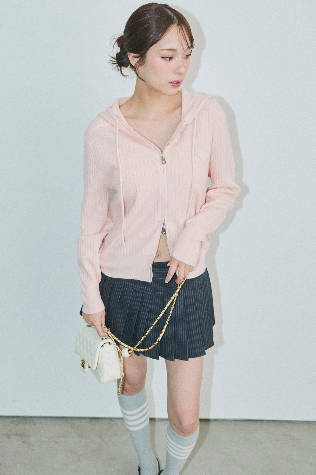 ダブルジップリブニットフーディー
