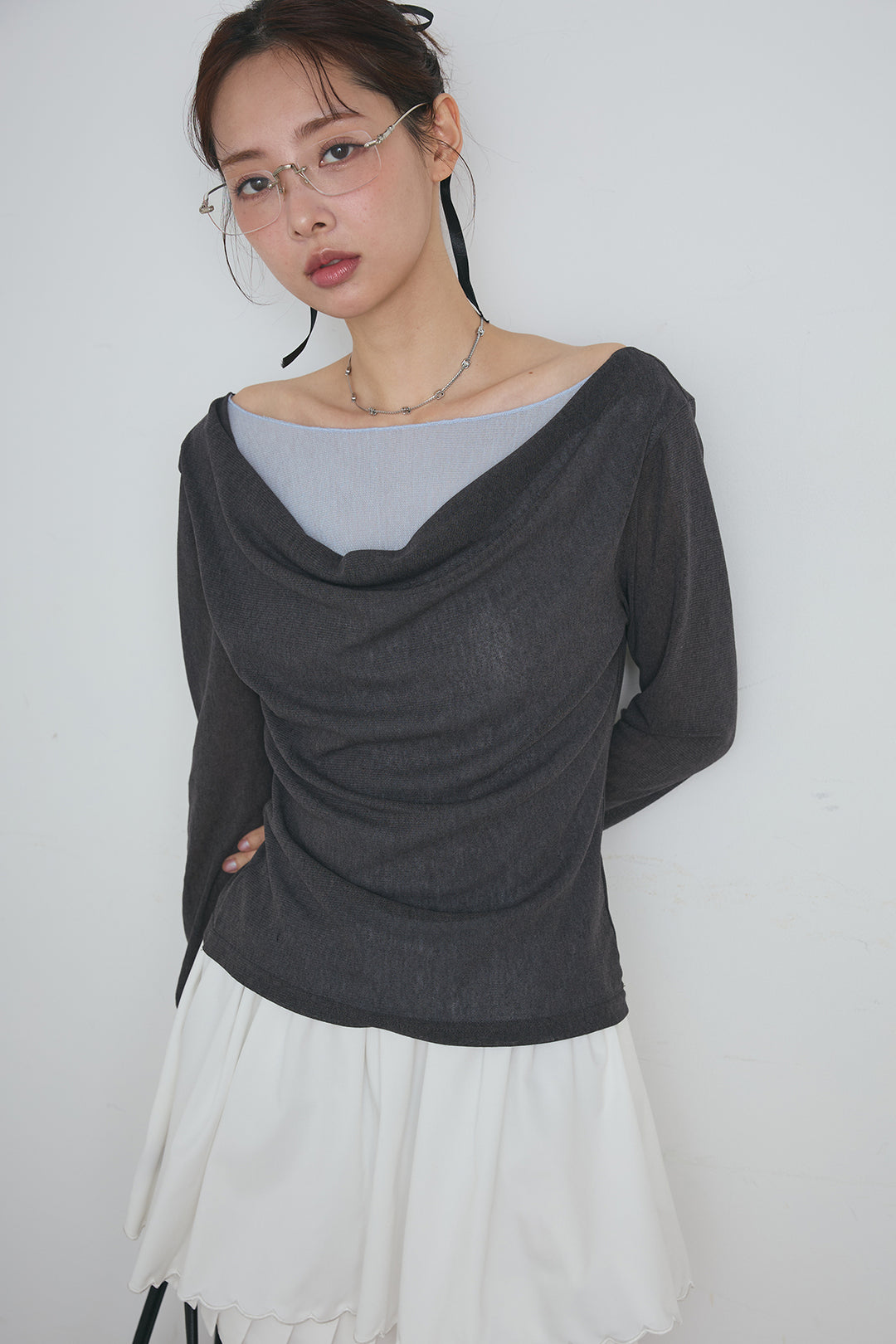 アシンメトリーオフショルルックニット