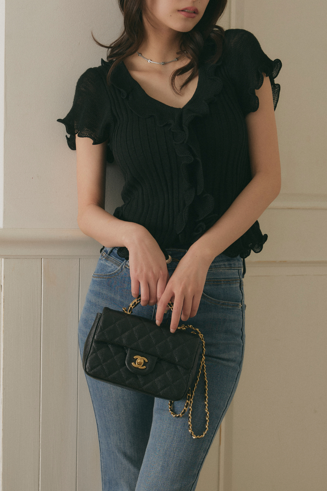 ウェービーフリル シアーリブニットカーディガン