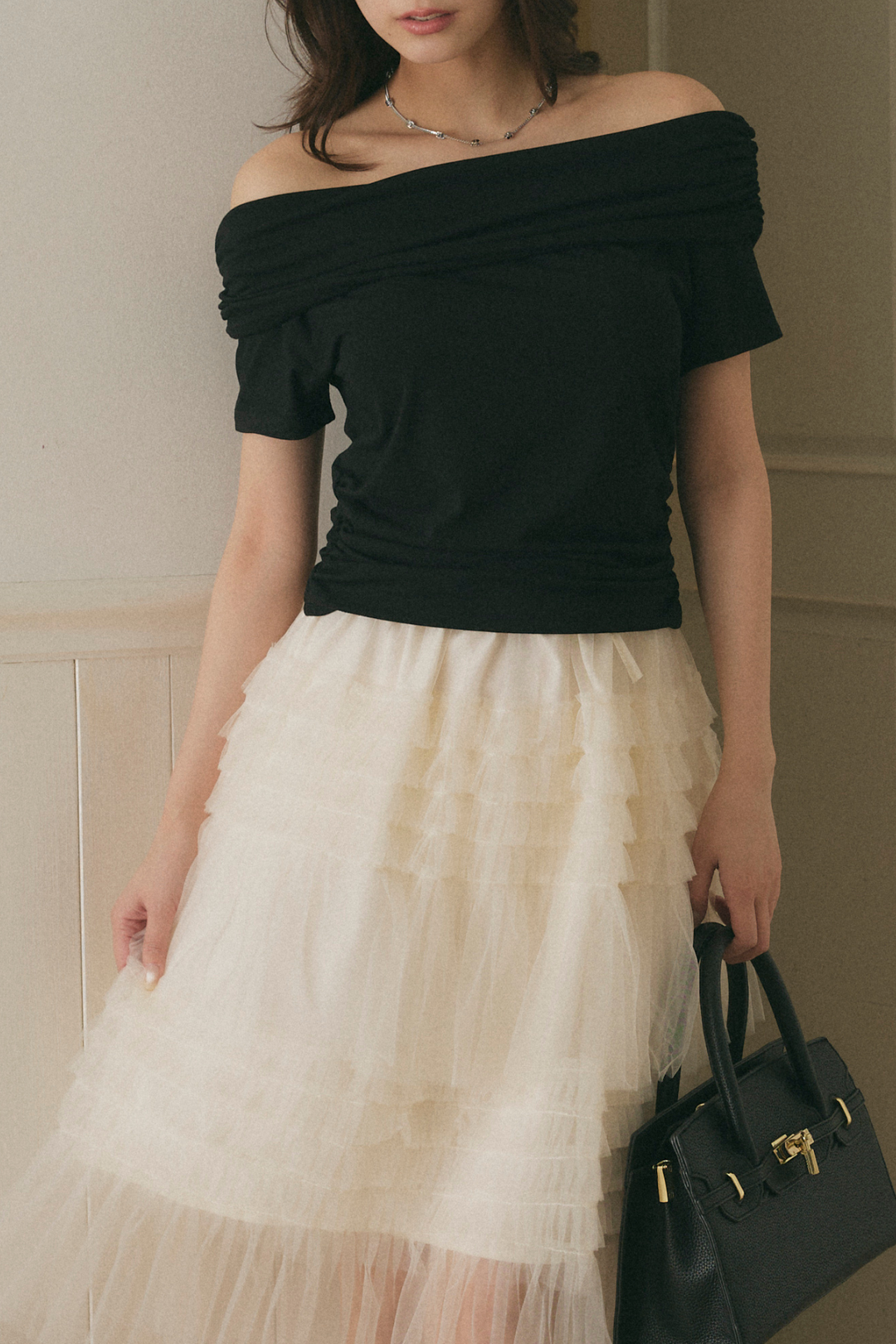 シアーチュールオフショルダートップス