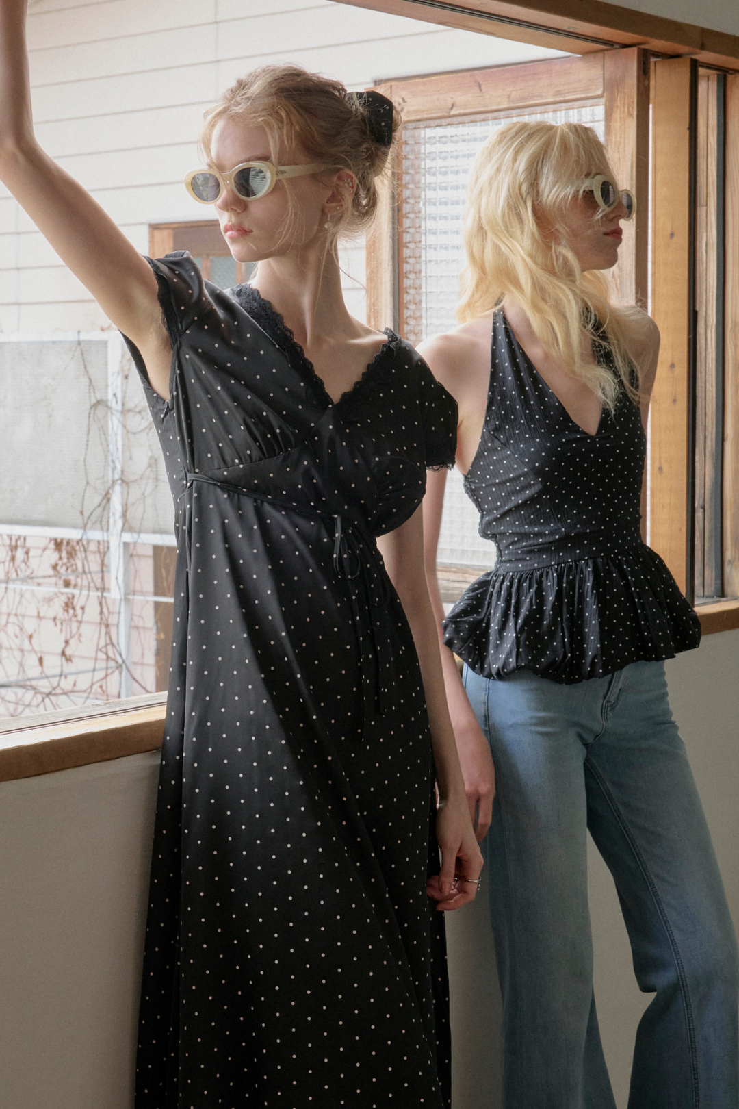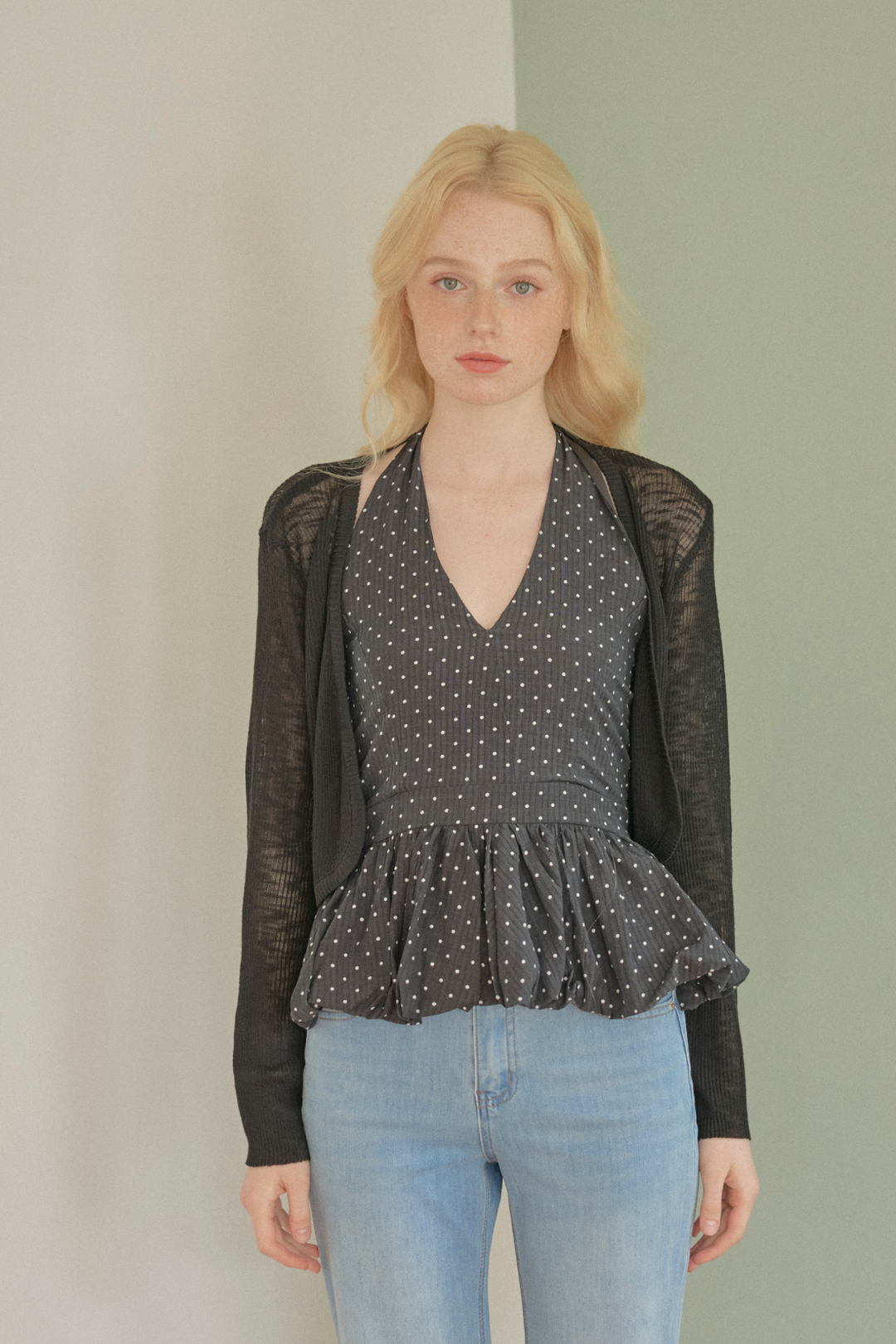 ワンショルダードットトップス