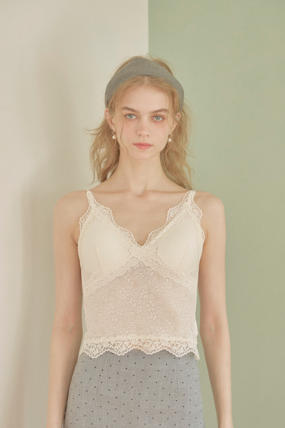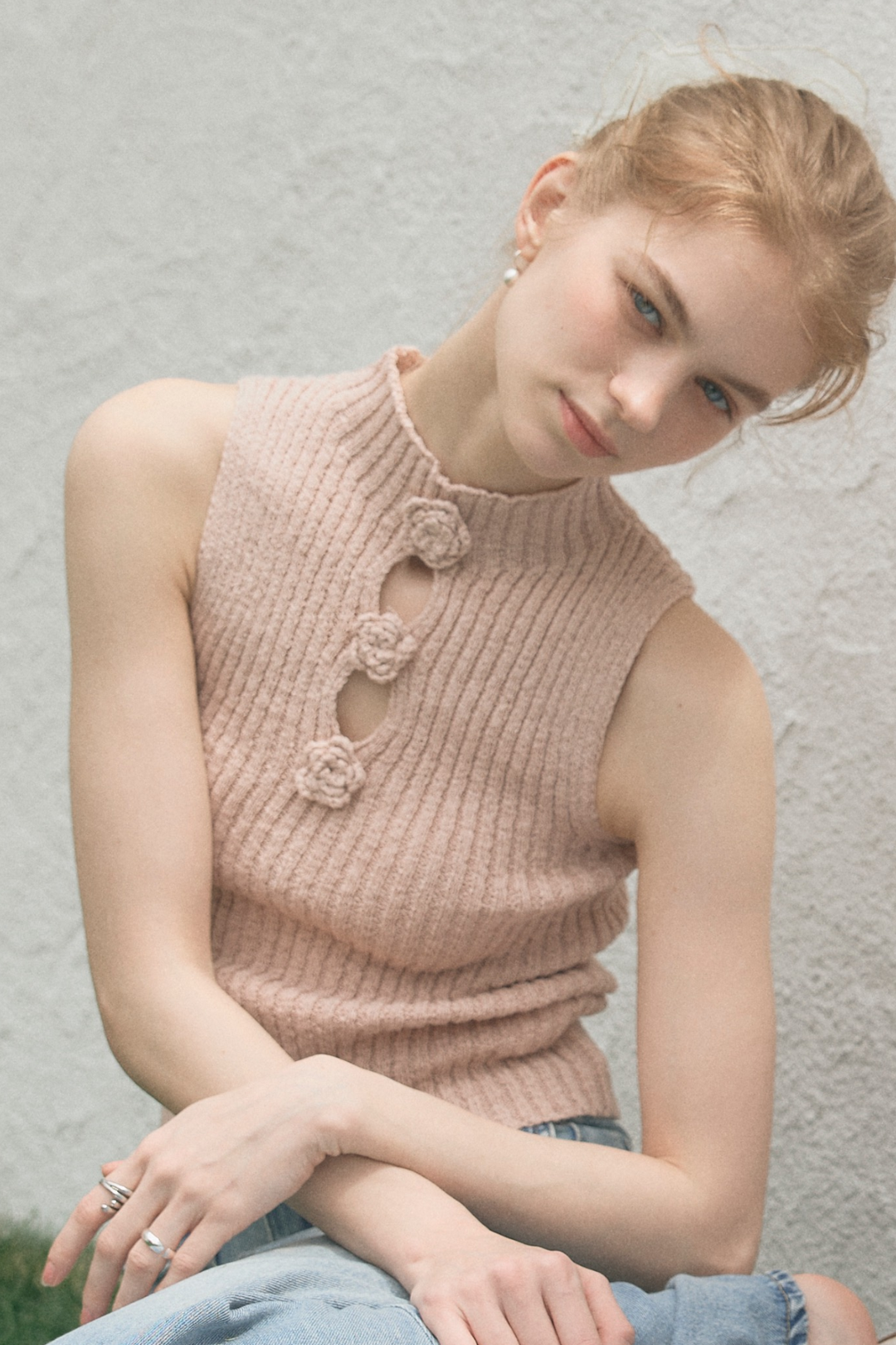 レースレイヤードリブニット