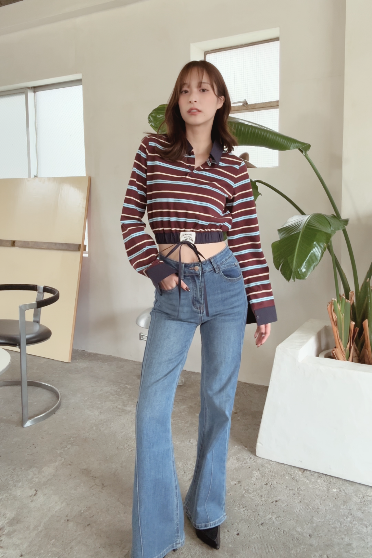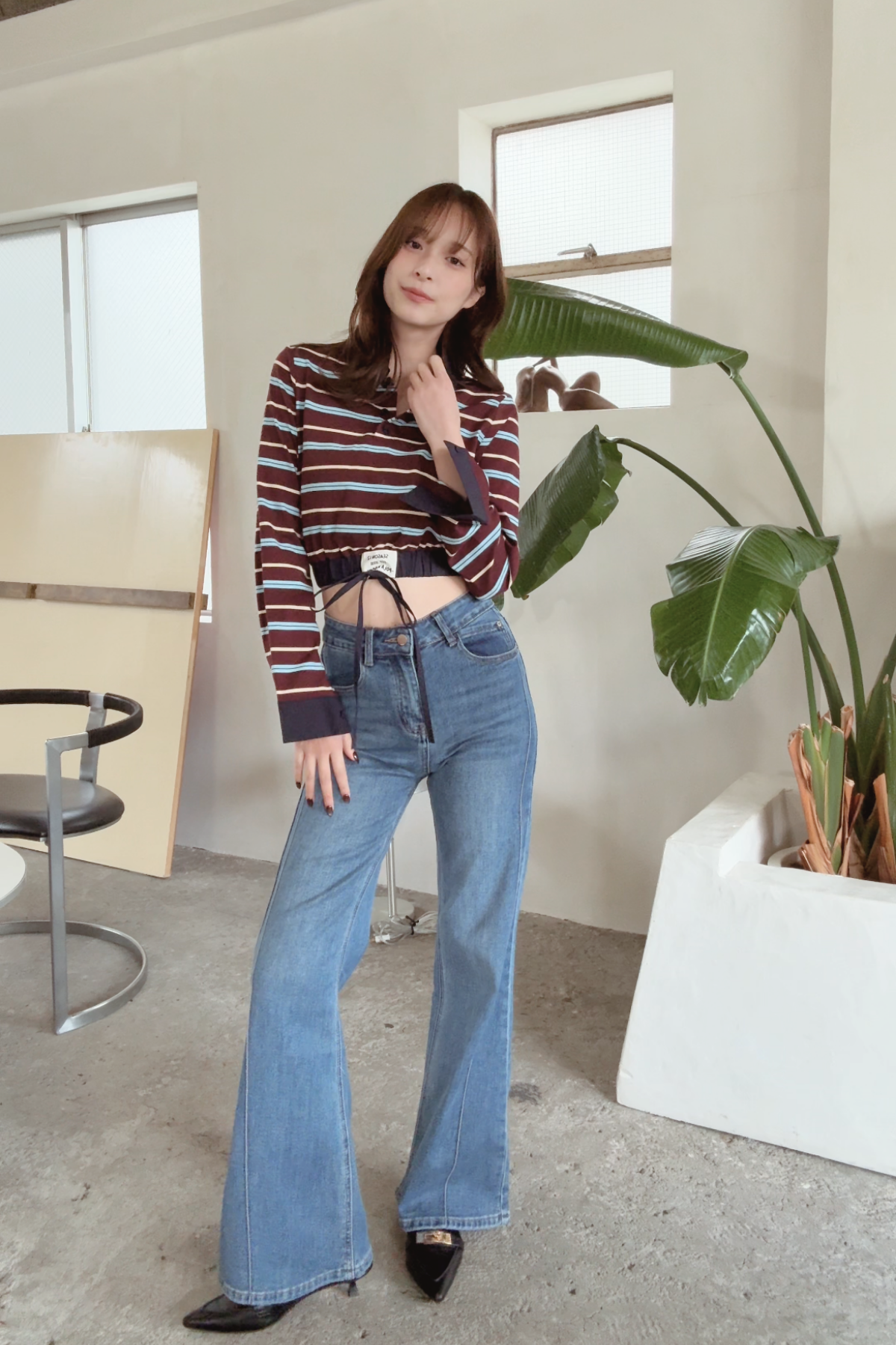 【コーディネートヒント】 デニムとの相性が抜群で、カジュアルなデイリースタイルにぴったり。ジャケットを羽織れば、オフィスシーンでも使える洗練された印象に。足元にはシンプルなスニーカーを合わせて、リラックス感を演出するのもおすすめです。また、スカートにインして、ウエストを強調したスタイルに仕上げると、一層女性らしさが際立ちます。シンプルなアクセサリーを加えて、さりげないおしゃれを楽しんでください。