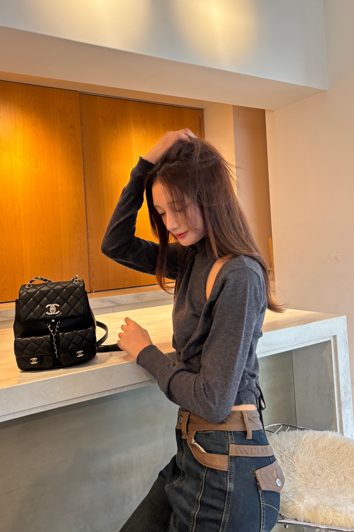 【コーディネートヒント】 デイリーシーンには、デニムとの組み合わせが最適です。リラックスした雰囲気を保ちながら、カジュアルな中にも上品さを感じさせます。また、軽やかなジャケットを羽織れば、オフィススタイルにもぴったり。シューズはスニーカーやローファーで合わせ、シンプルなトートバッグを添えることで、バランスの取れたコーディネートが完成します。