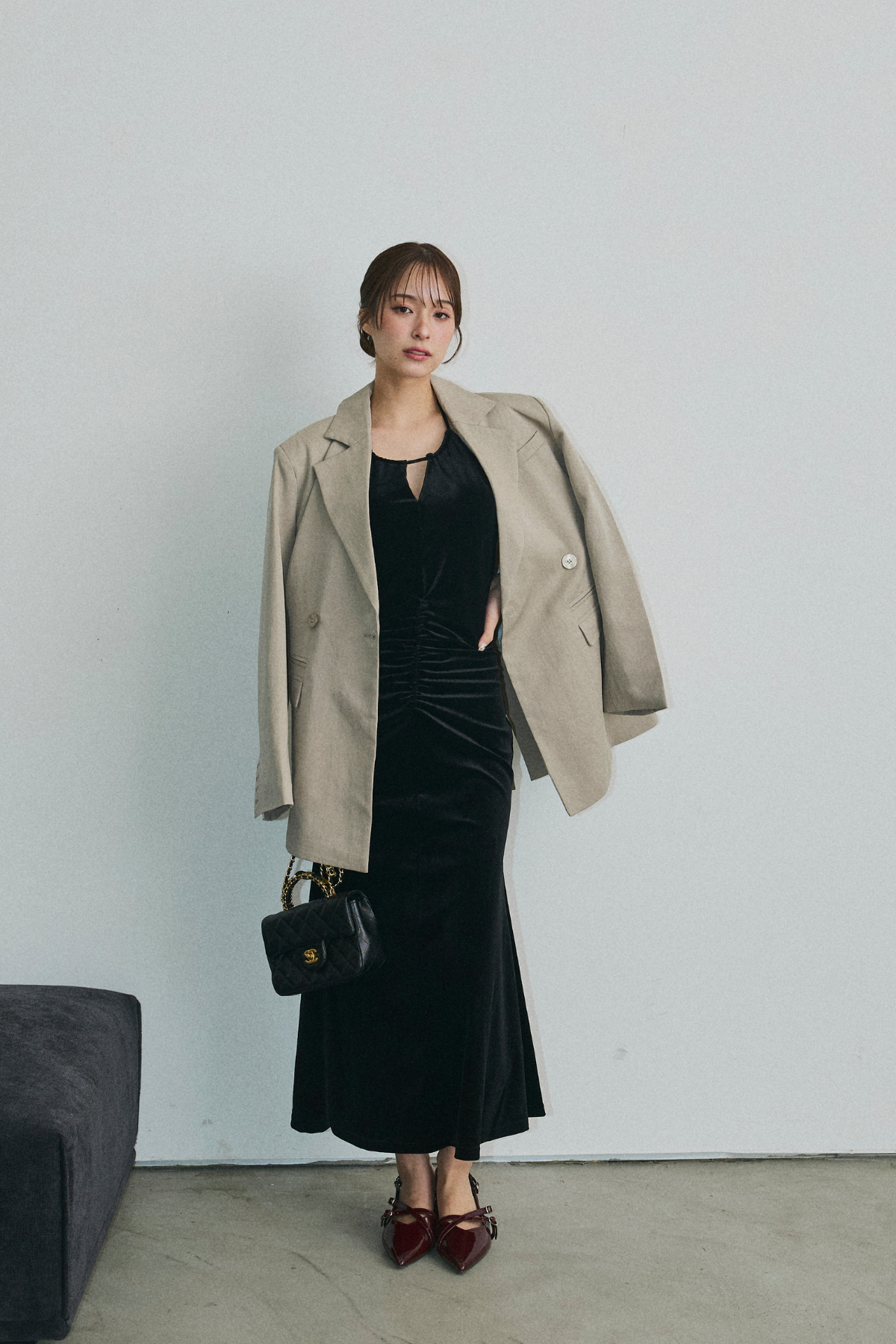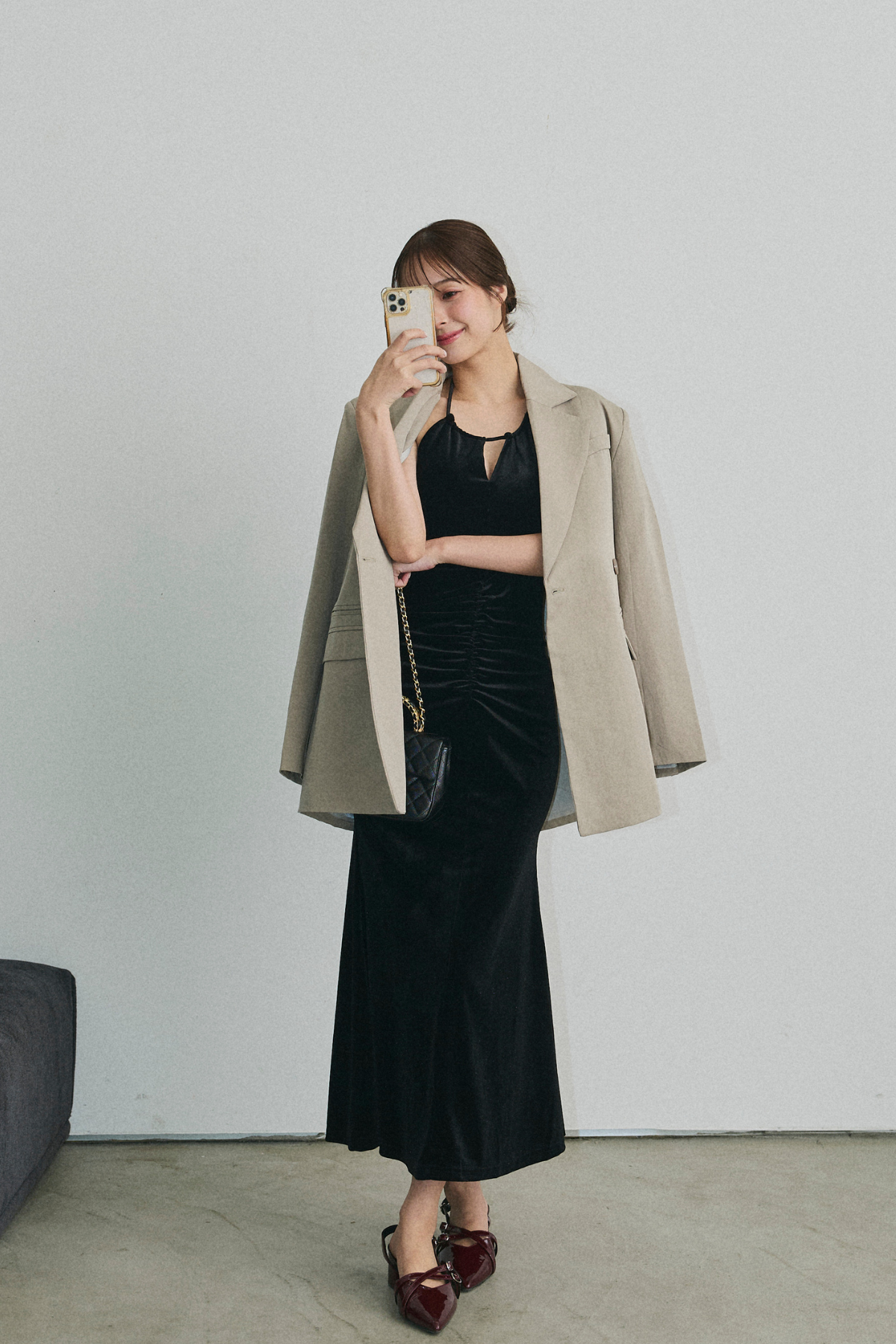 【コーディネートヒント】 デイリーから特別なシーンまで幅広く活躍するこのドレスは、シンプルなパンツやジャケットと合わせてカジュアルダウンするのも素敵です。華やかなイベントには、ヒールとクラッチバッグをプラスして、洗練されたスタイルを完成させて。アクセサリーはシンプルにまとめることで、全体のバランスを整え、上品さを保ちます。