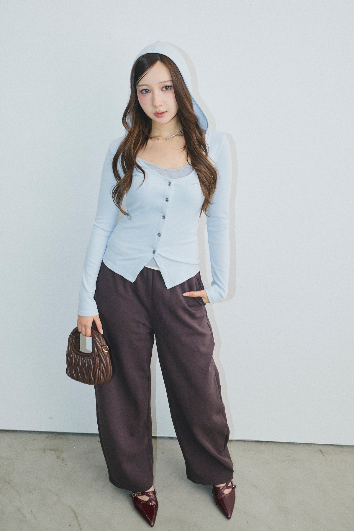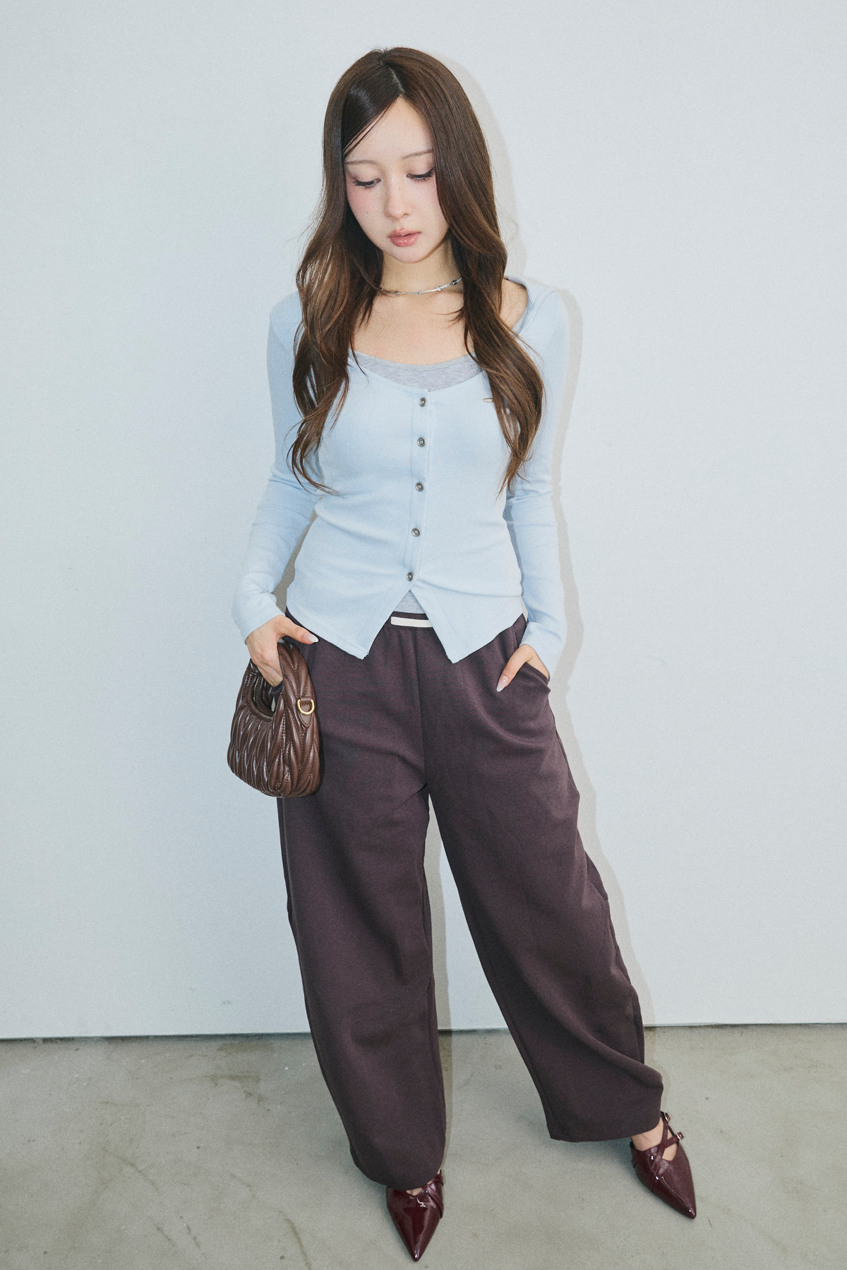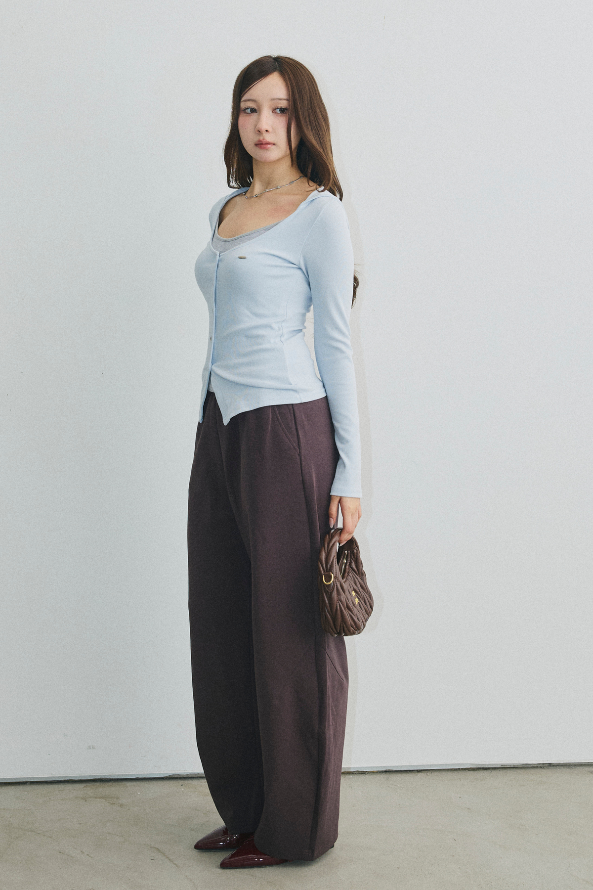【コーディネートヒント】 デイリーユースに最適なこのアイテムは、スカートやデニムと合わせることで、カジュアルながらも上品な印象を演出します。特に、軽やかなフレアスカートと組み合わせれば、春のお出かけにもぴったりです。また、ジャケットを羽織ることで、オフィスシーンにも対応可能。シンプルなバッグやアクセサリーを添えることで、全体のコーディネートが引き締まります。