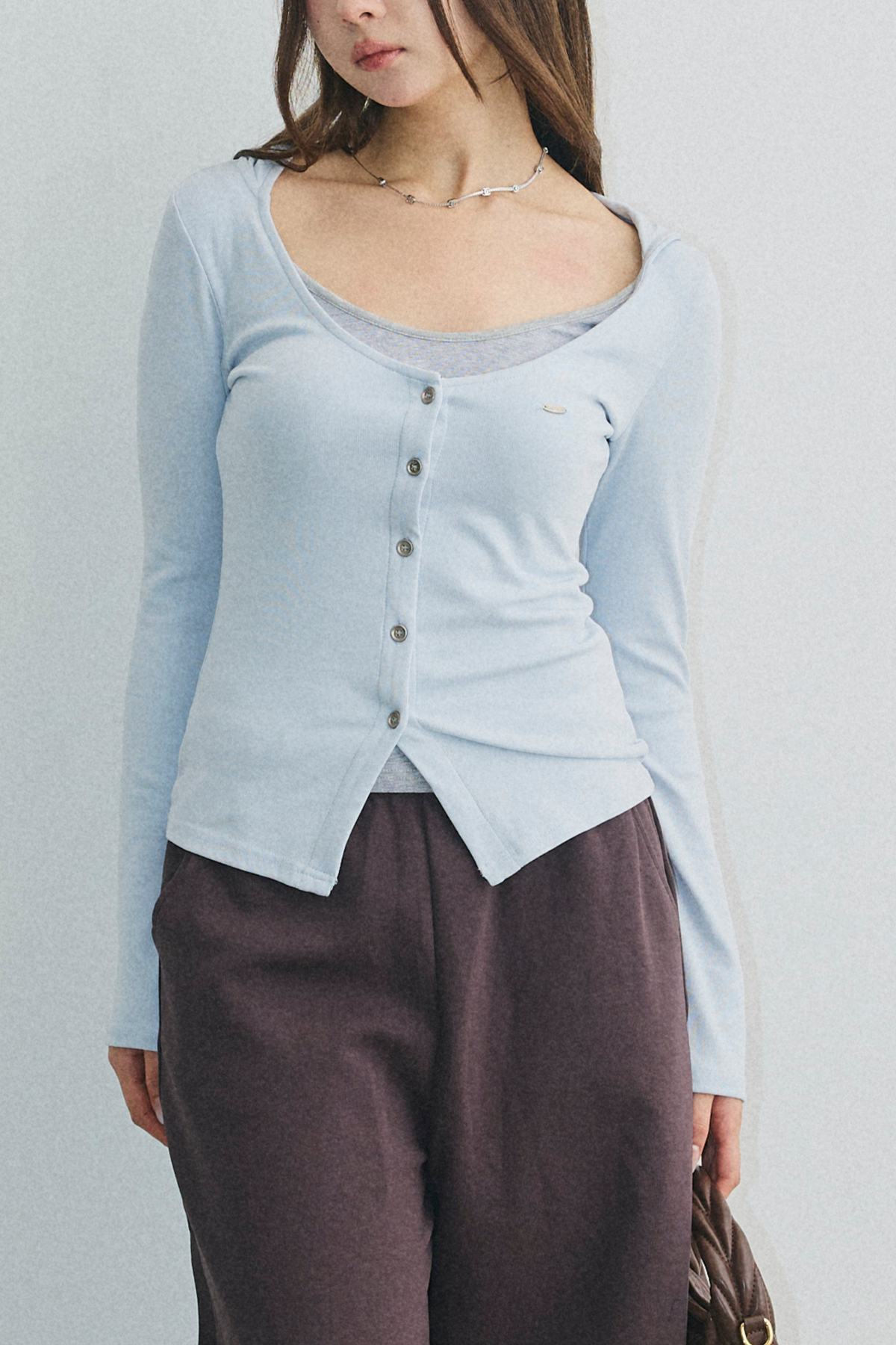 配色レイヤードボタントップス