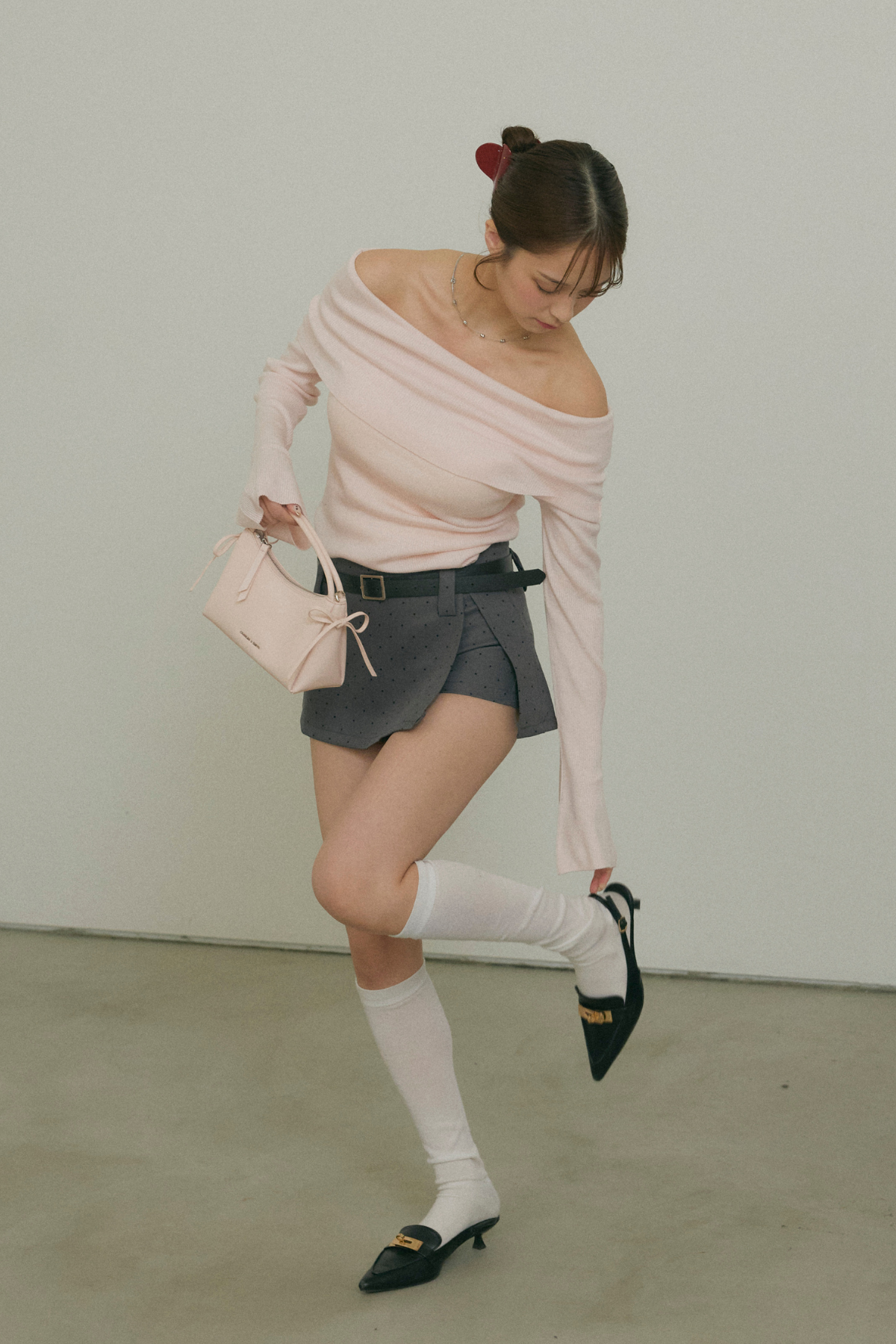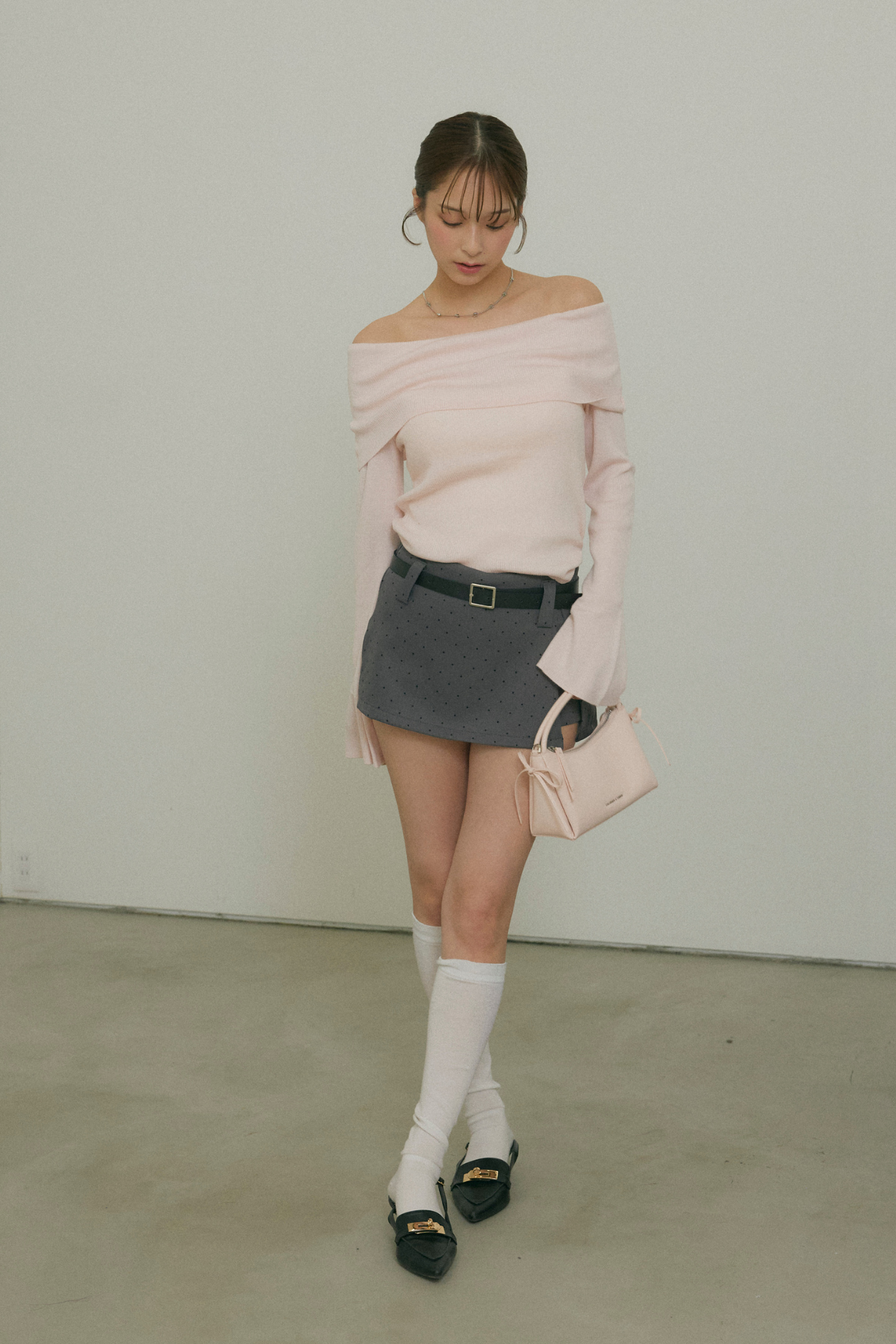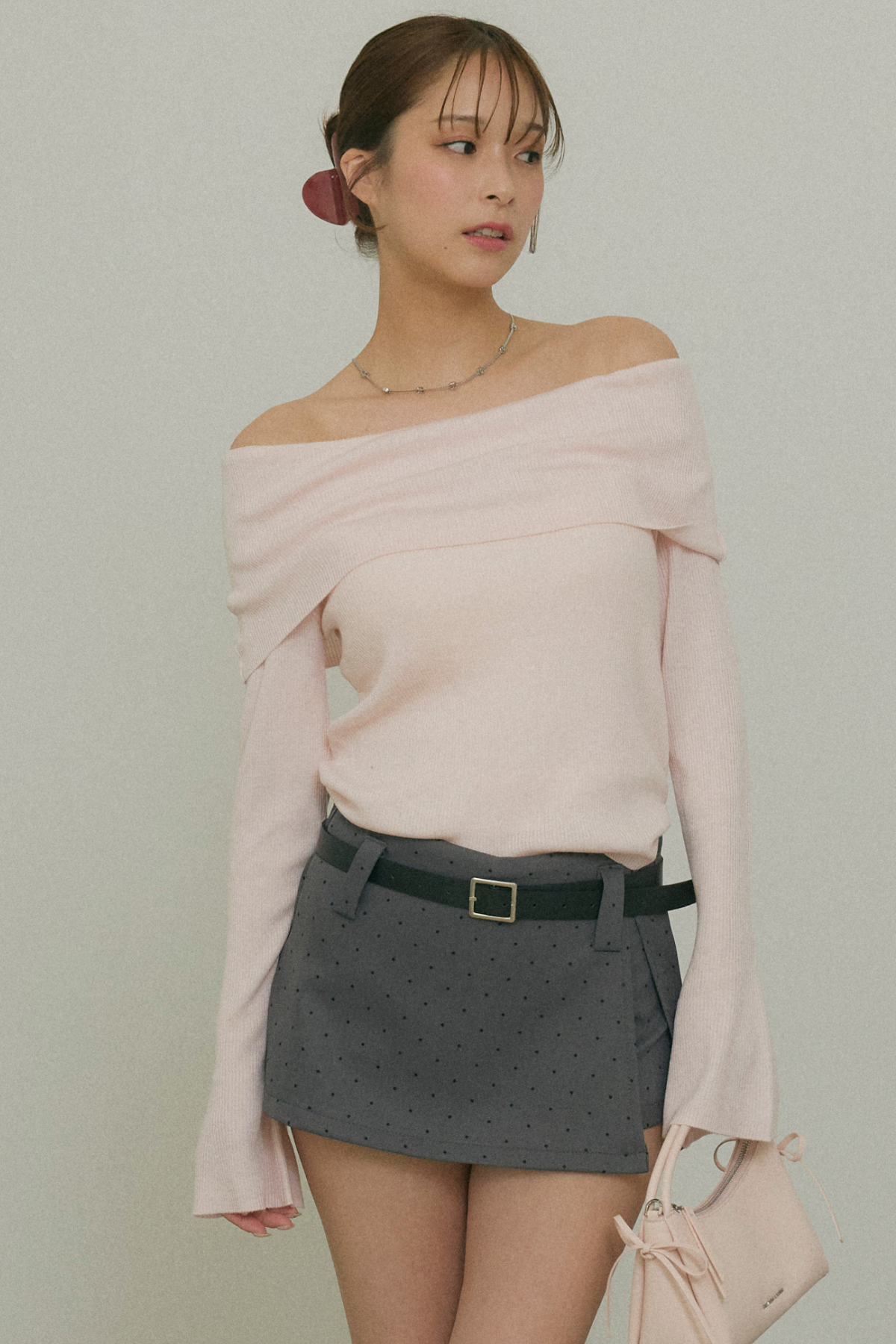 【デザイン】トレンドのドット柄スカートは、キュートなデザインとベルトディテールが特徴。高めのウエストラインがスタイルを引き立て、動くたびに美しいラインを描きます。柔らかな素材感で、着心地も抜群です。シンプルながらも存在感のあるデザインが、さまざまなシーンで活躍します。