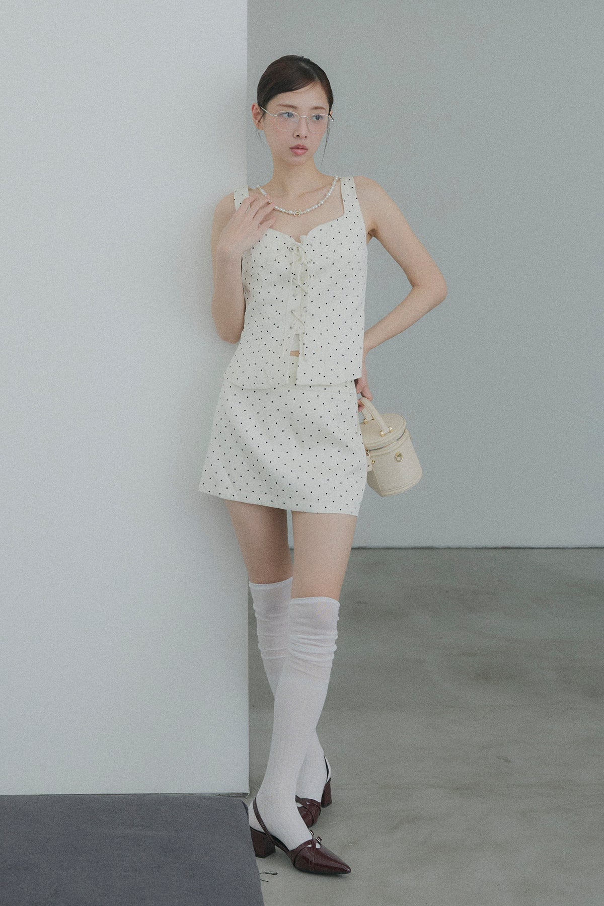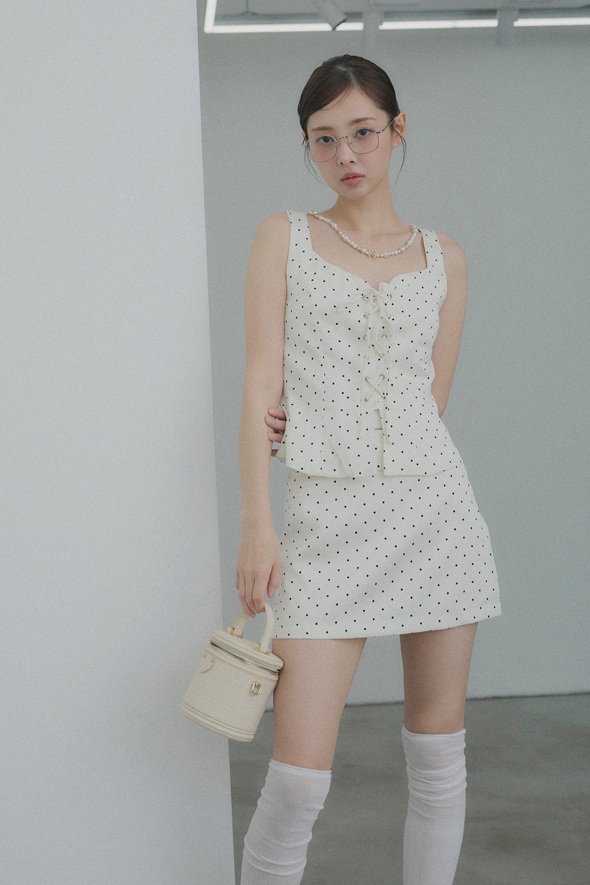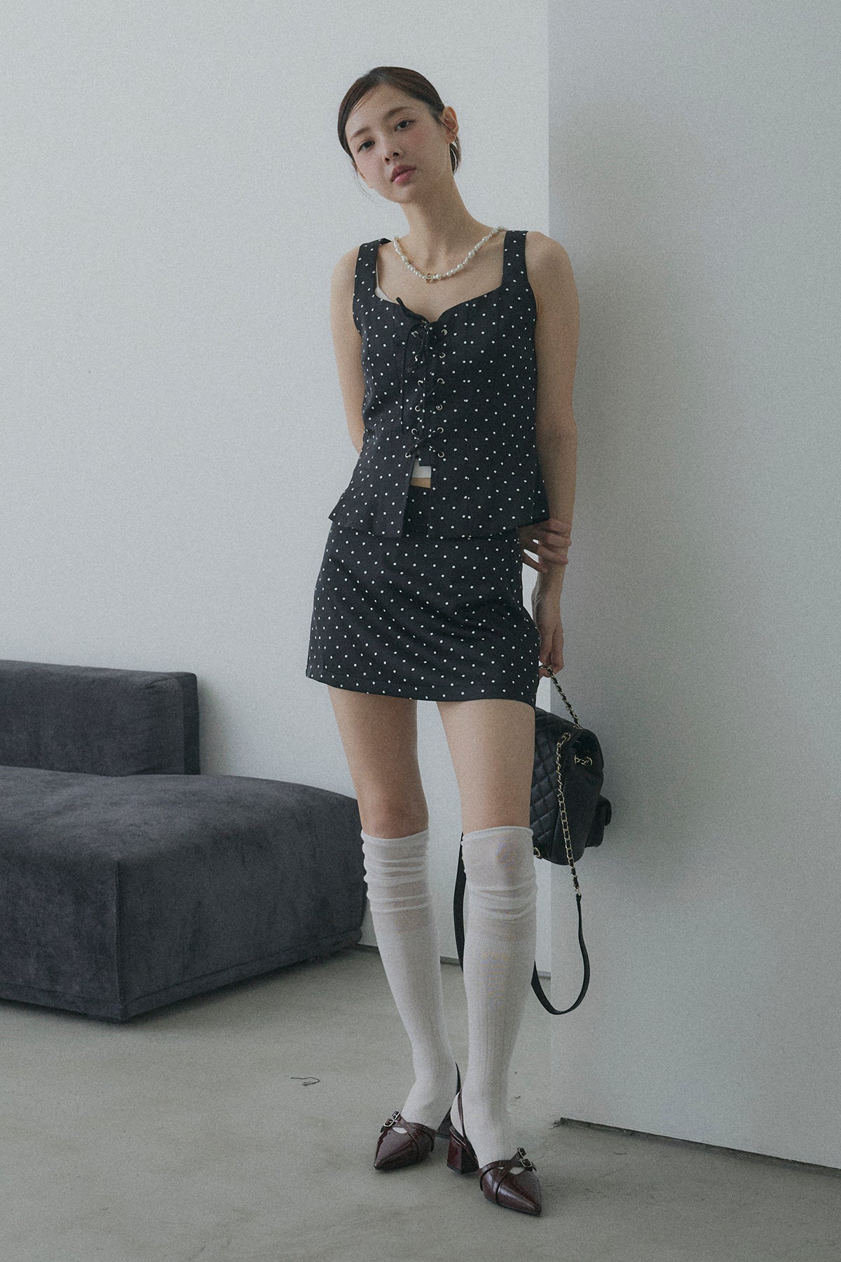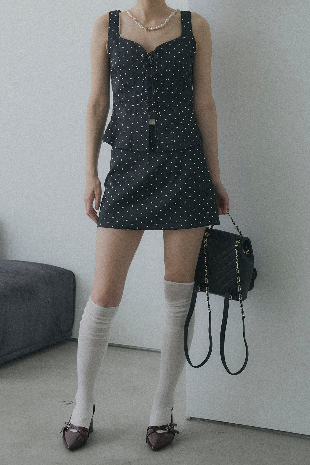 フロントレースアップドットビスチェセットアップ