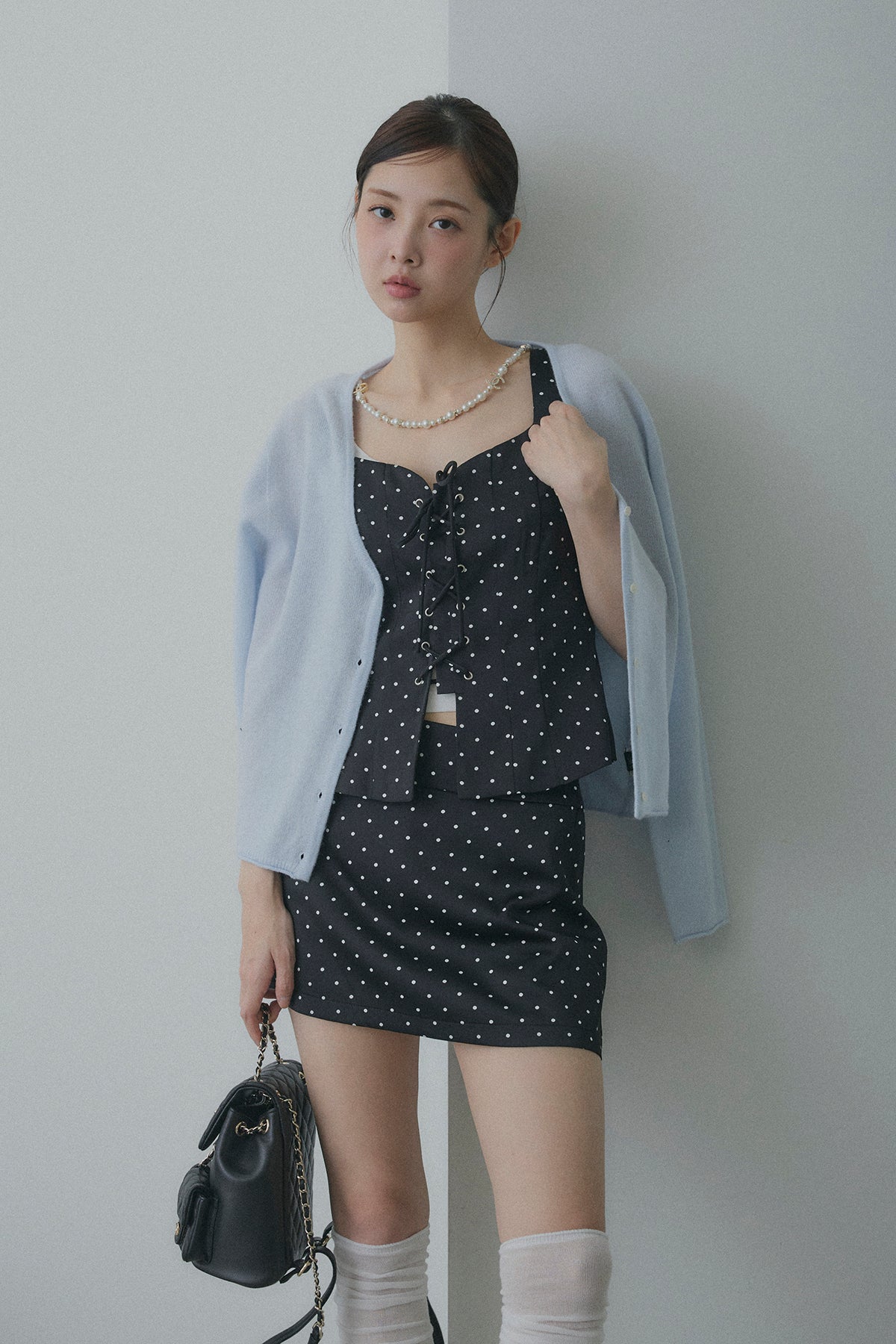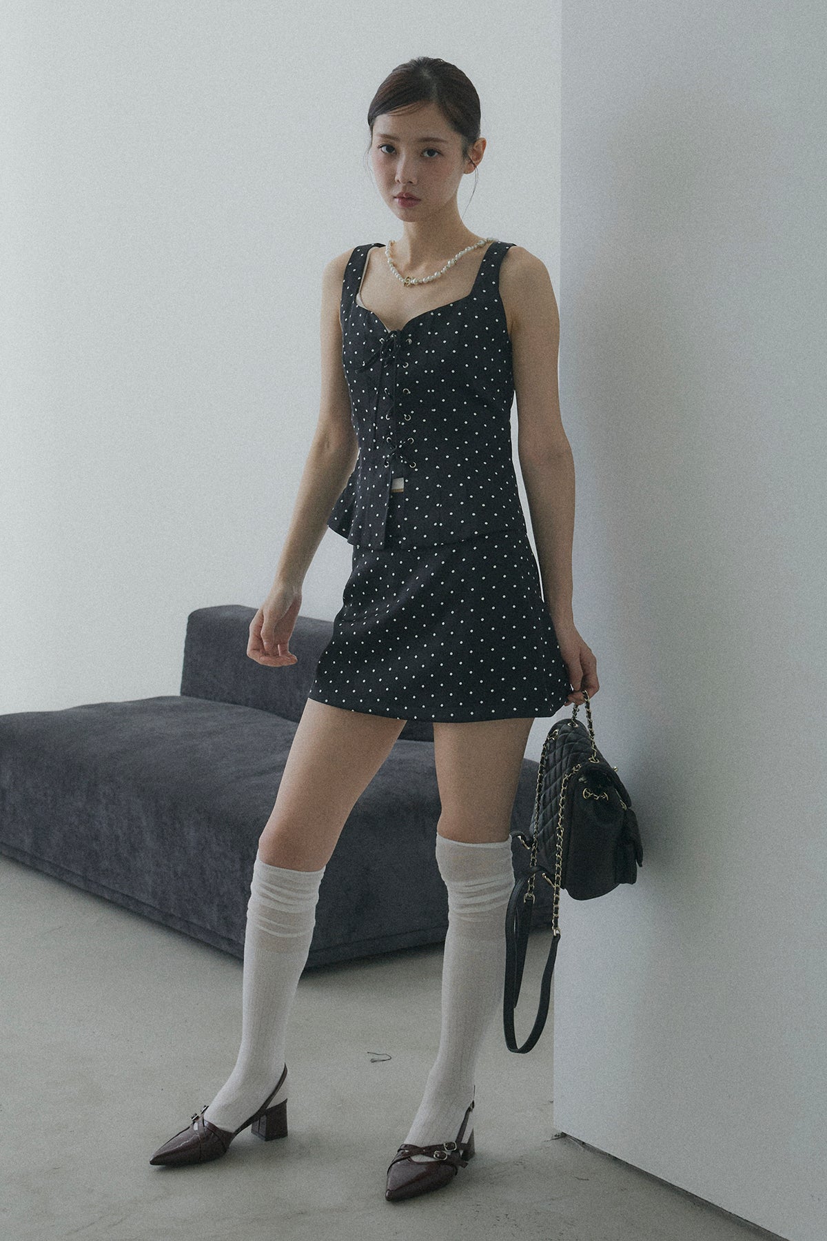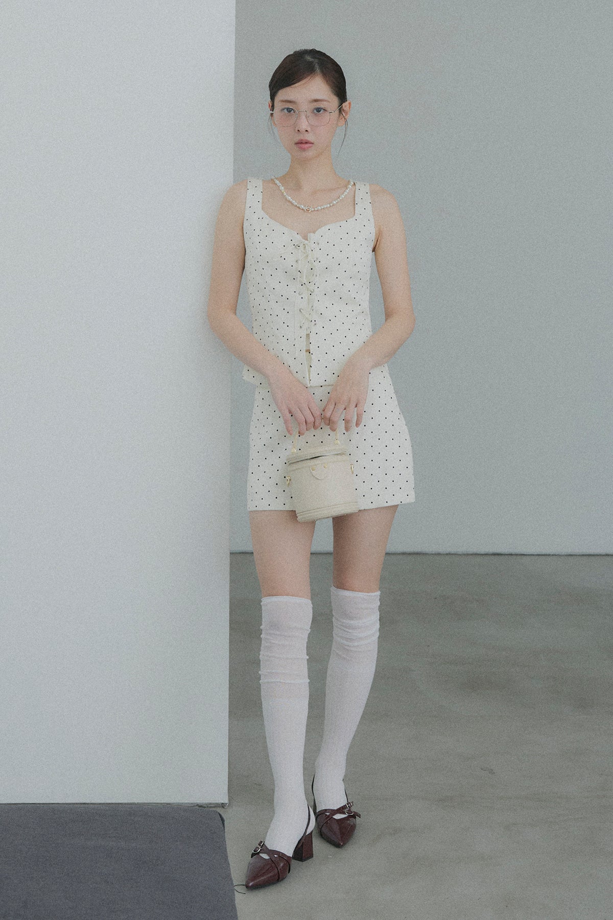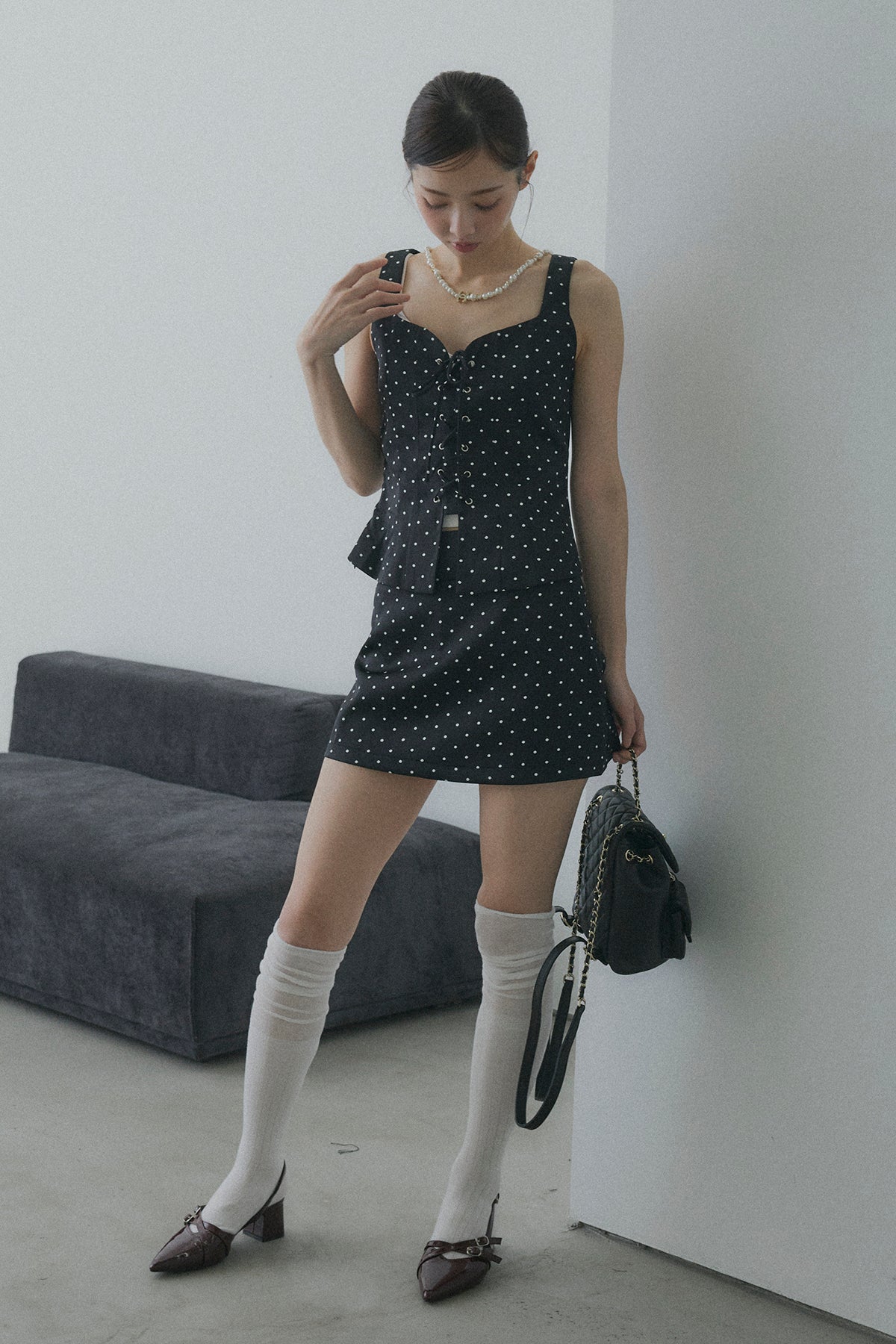 フロントレースアップドットビスチェセットアップ
