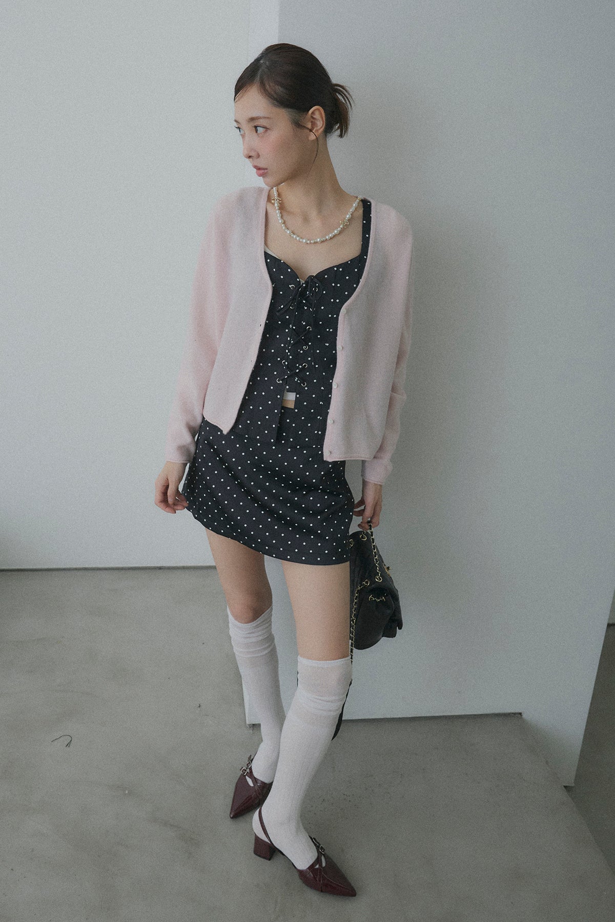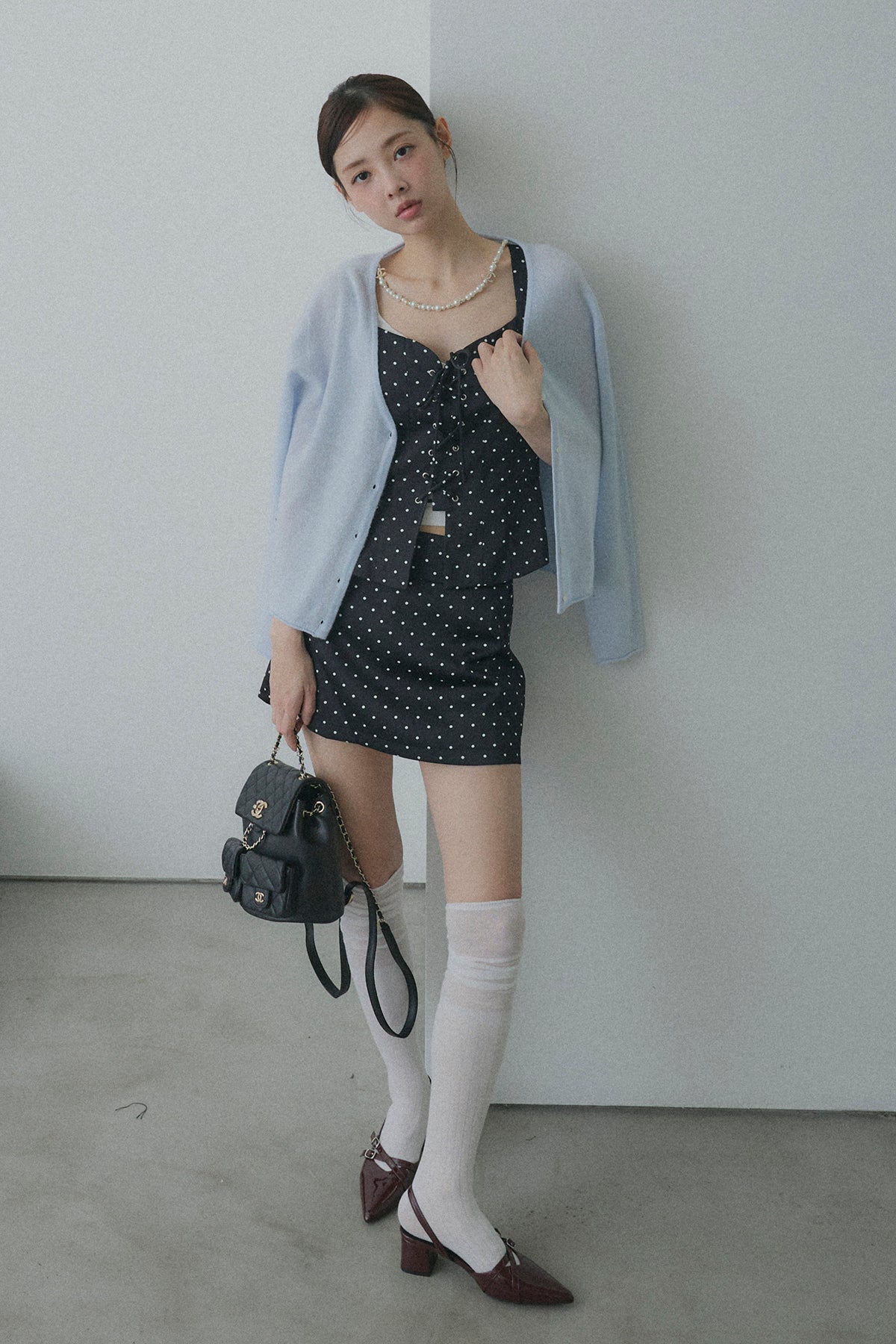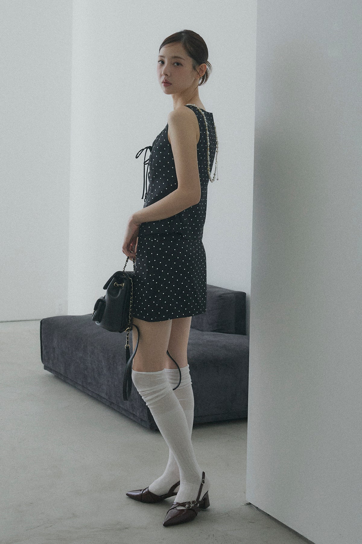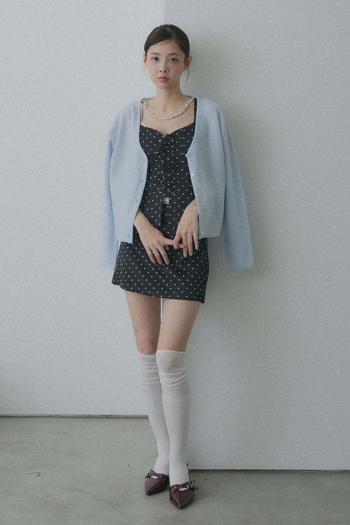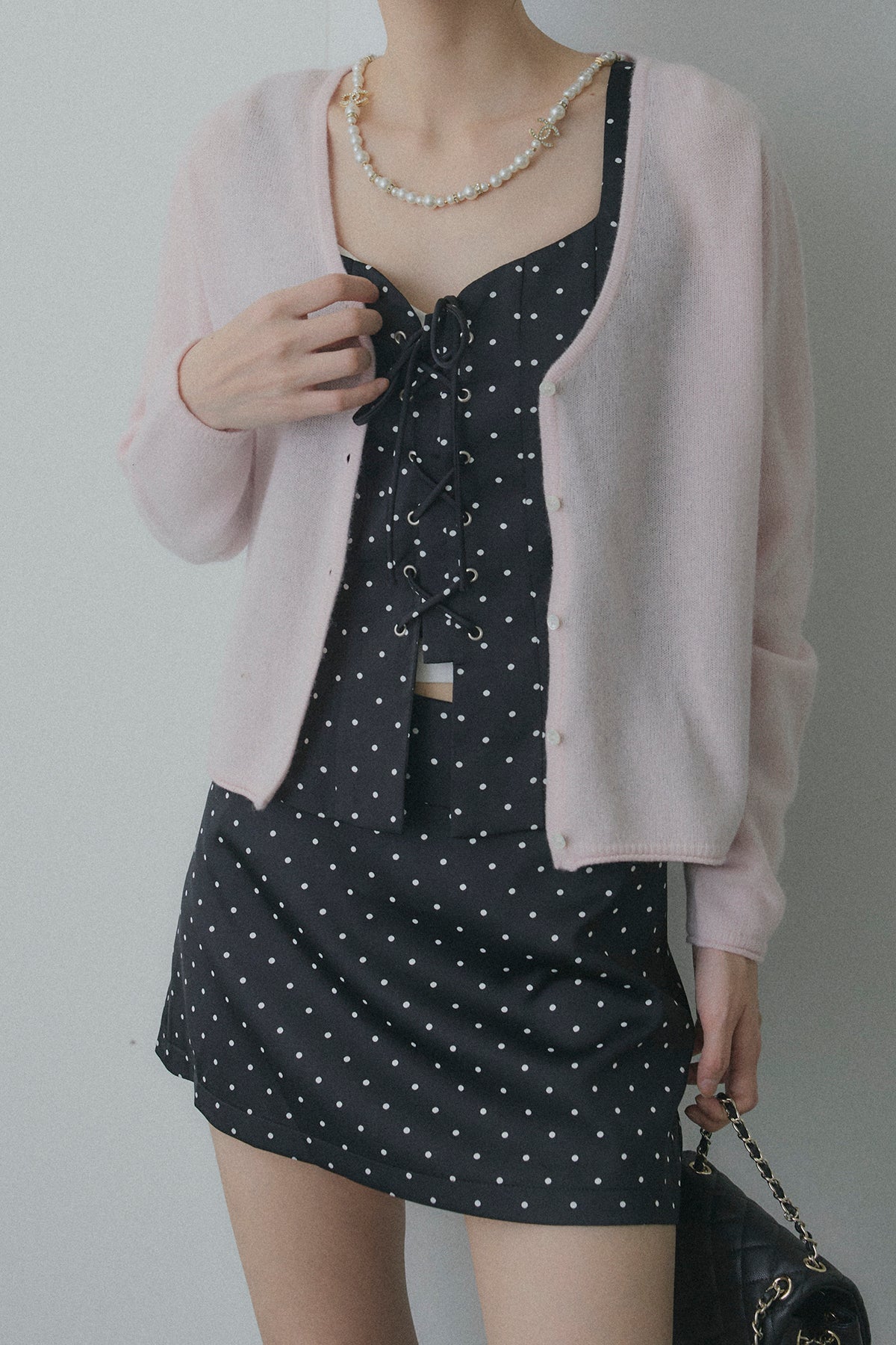 フロントレースアップドットビスチェセットアップ