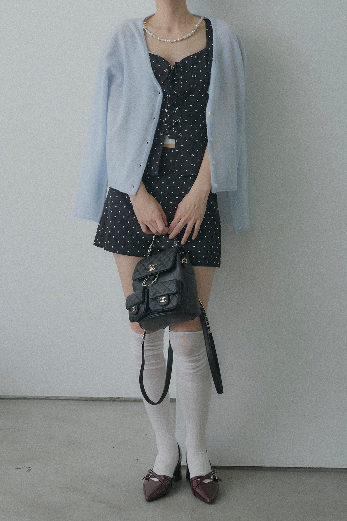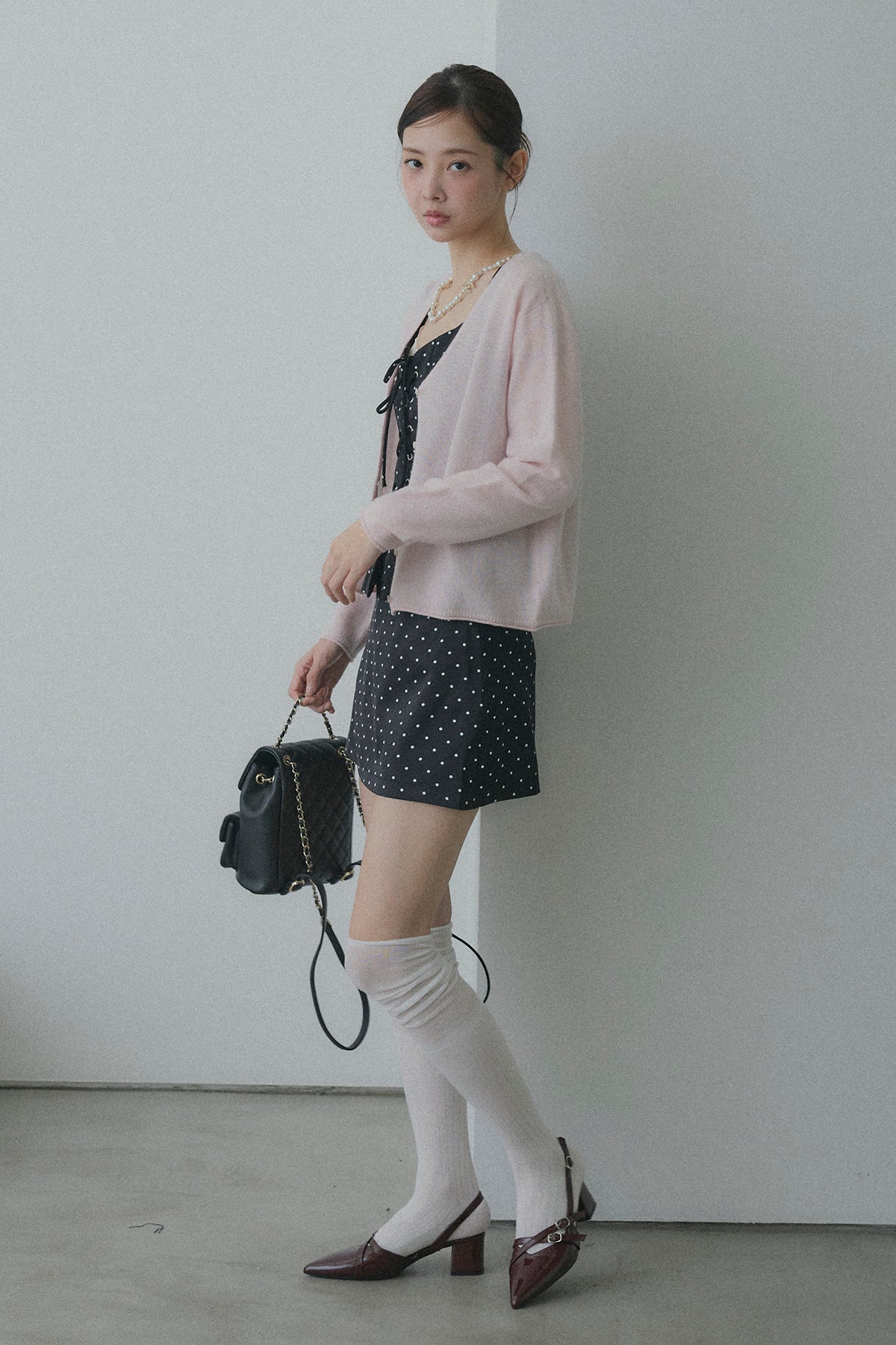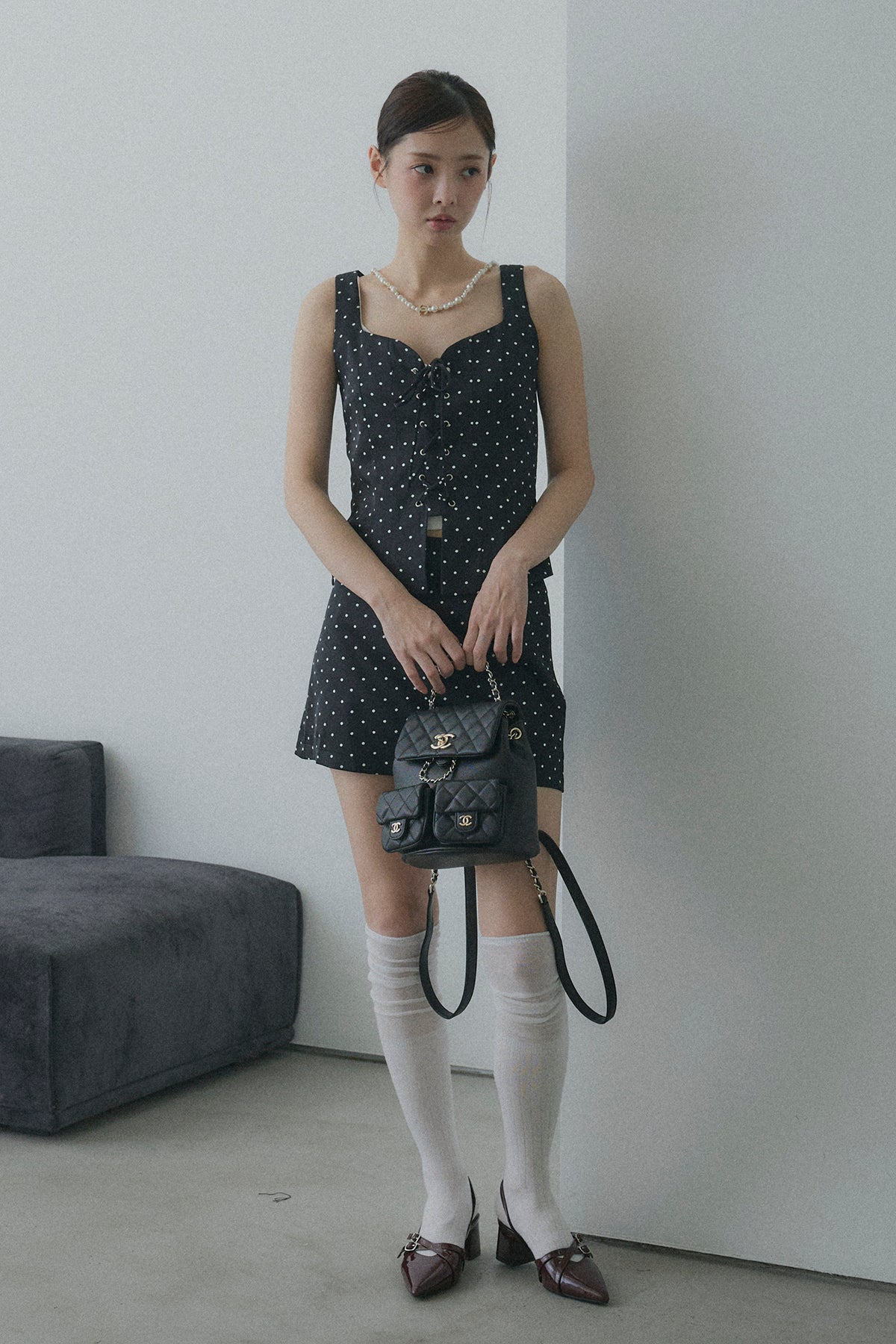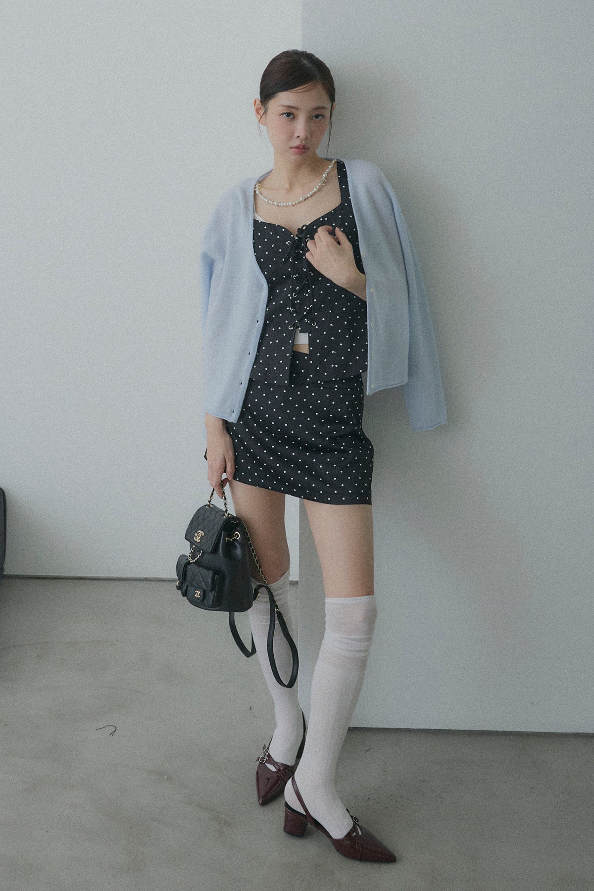フロントレースアップドットビスチェセットアップ