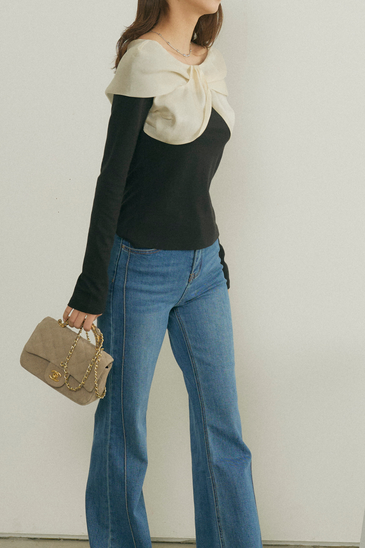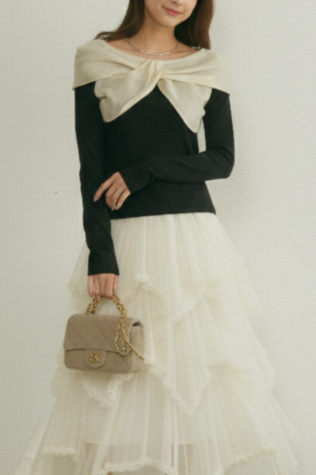 【コーディネートヒント】フレアデニムやチュールスカートを合わせることで、カジュアルからフォーマルまで楽しむことができます。