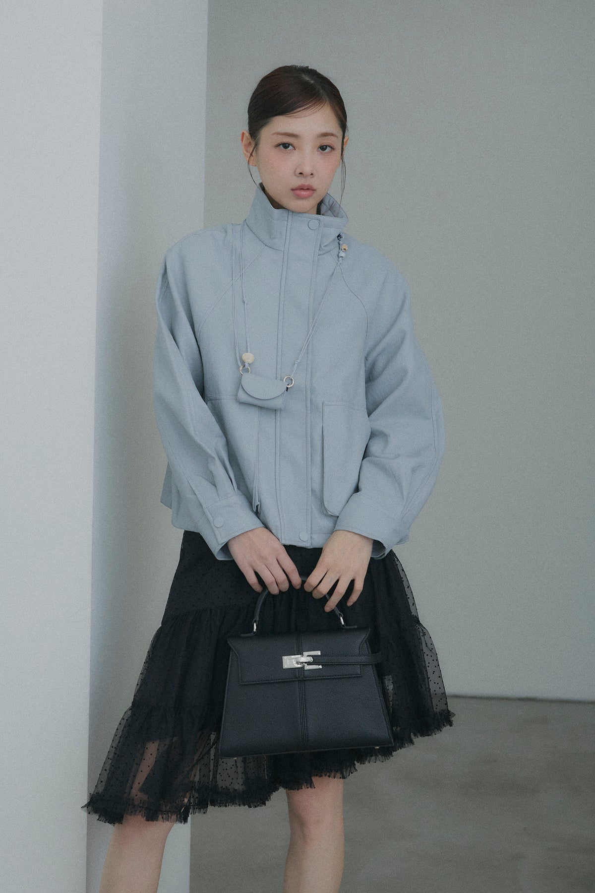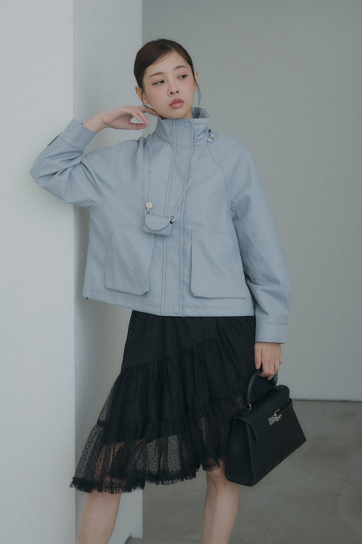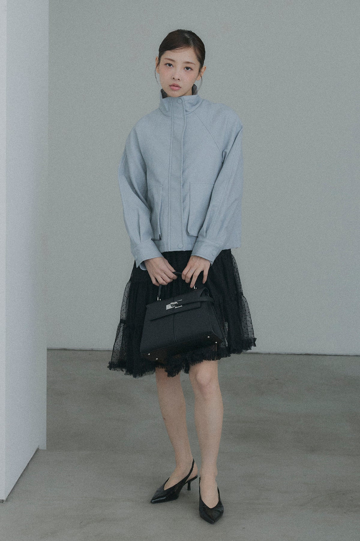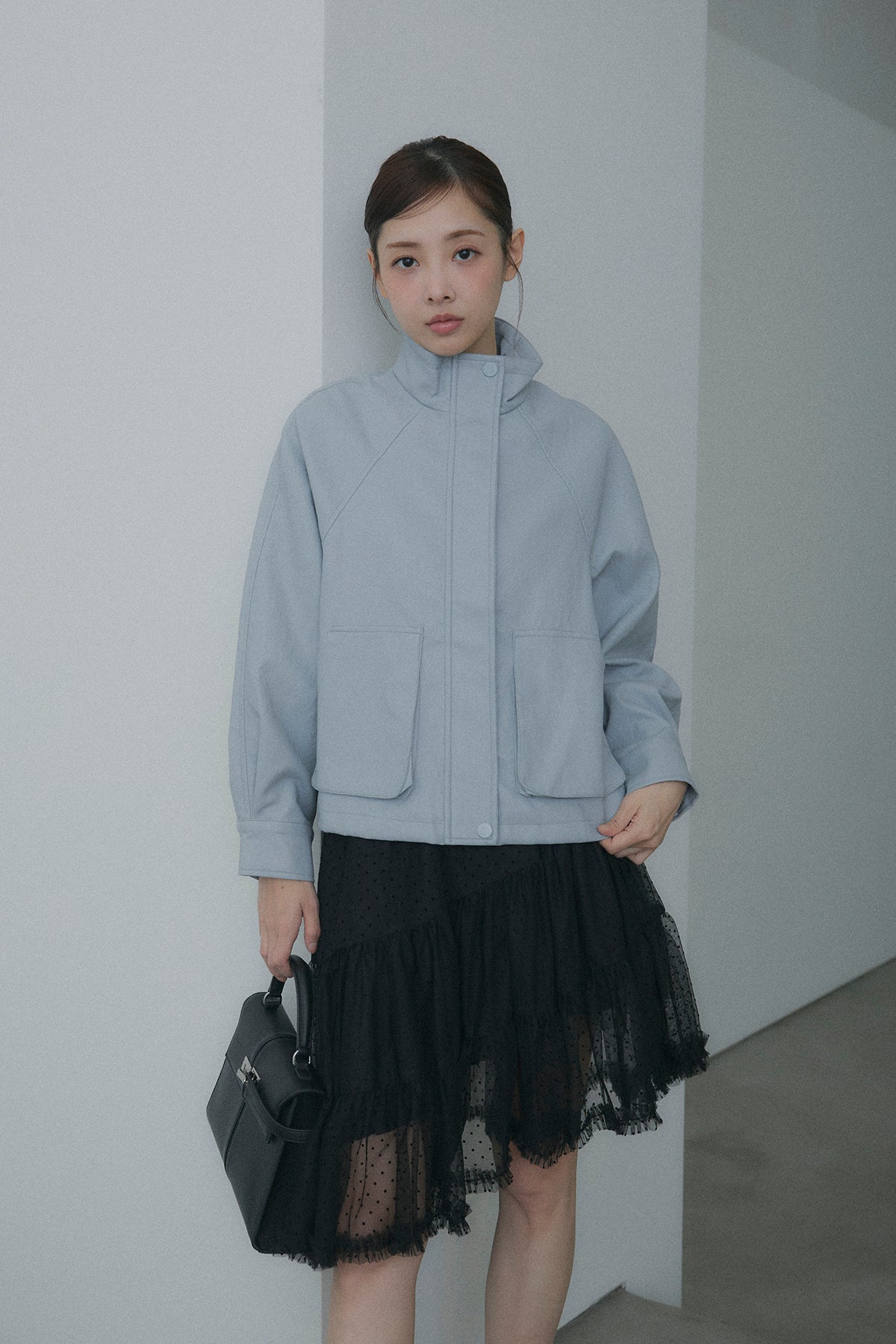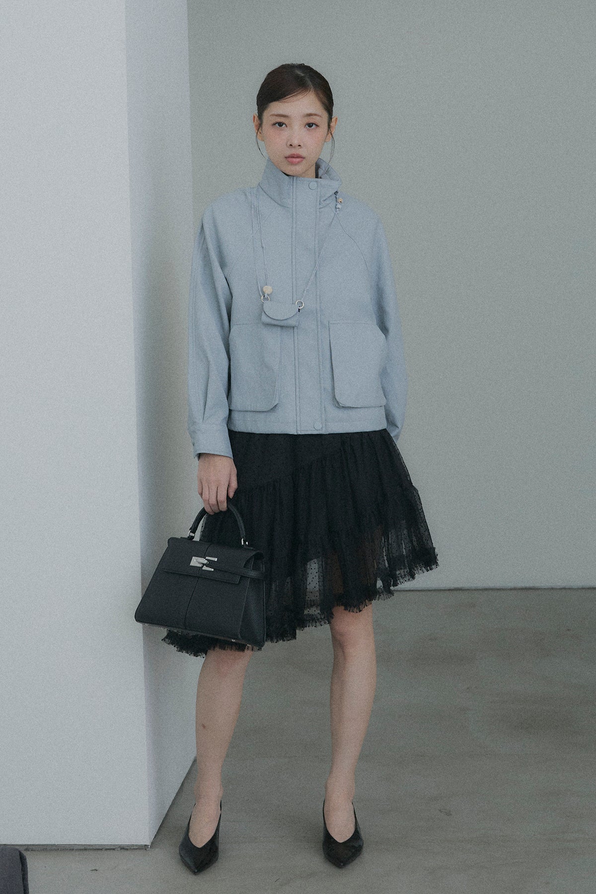 【デザイン】 軽やかなドット柄のチュールを幾重にも重ね、デイリーに重宝しながらも、脚のラインを綺麗に見せてくれるアシンメトリーな裾デザイン。歩くたびにランダムに揺れるティアードフリルが、コーディネートに奥行きと華やかさをプラスします。程よいシアー感とボリュームのバランスが、女性らしく可憐なシルエットを演出してくれます。