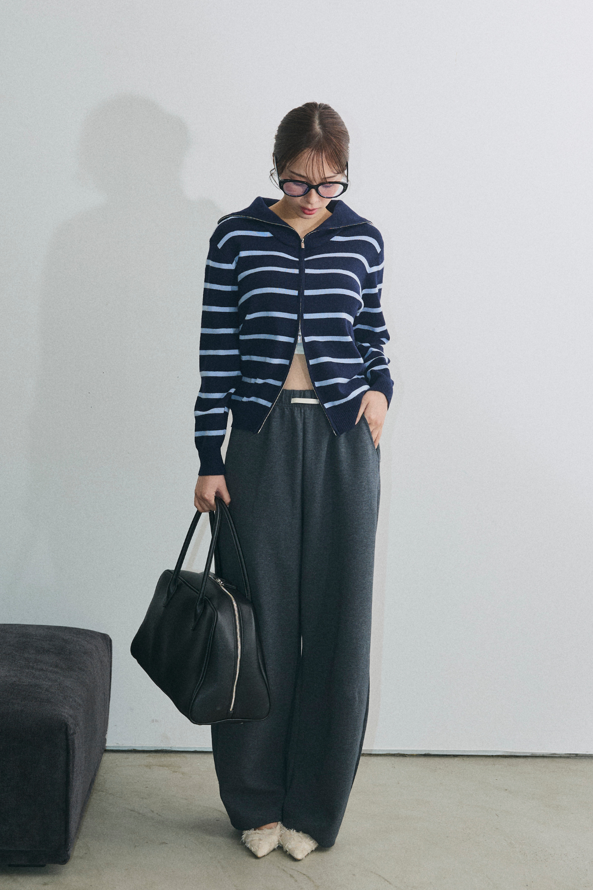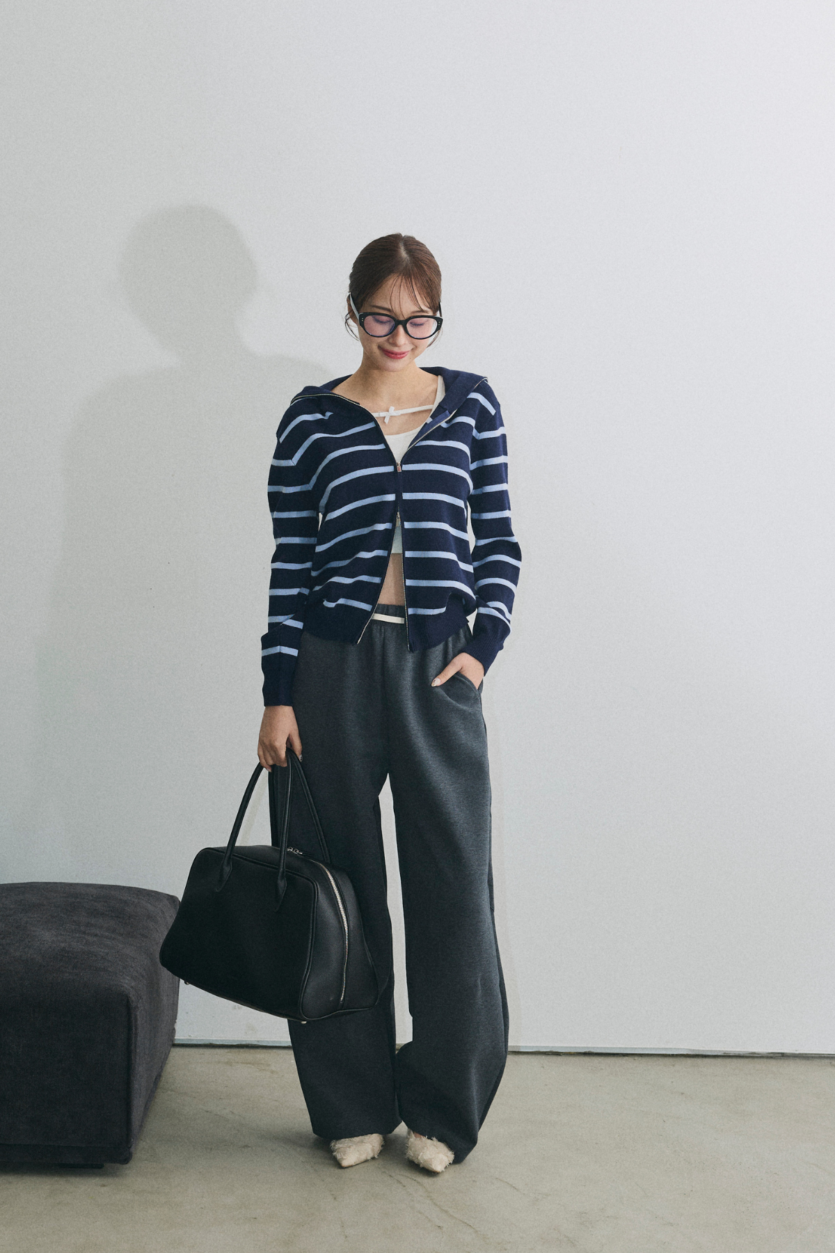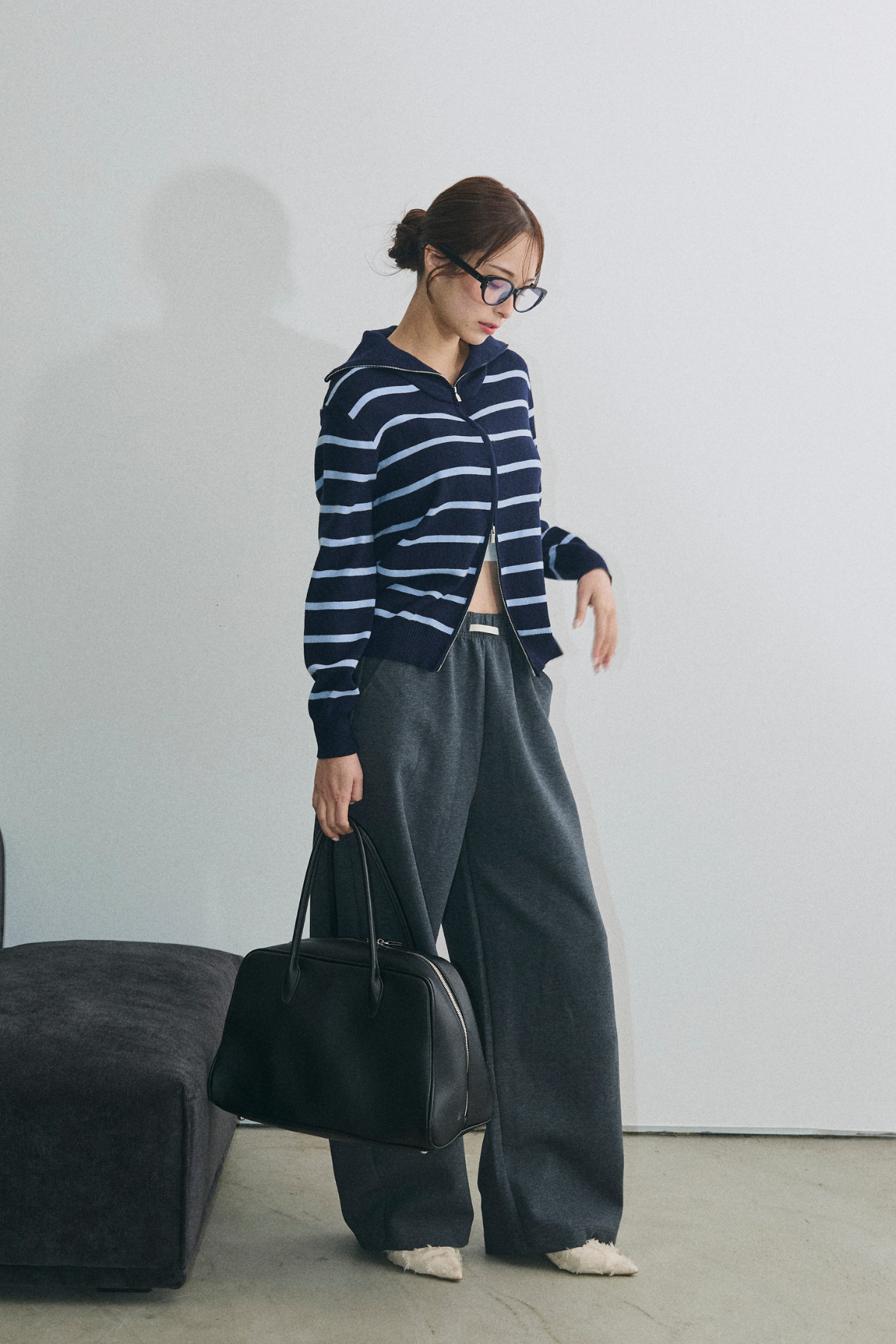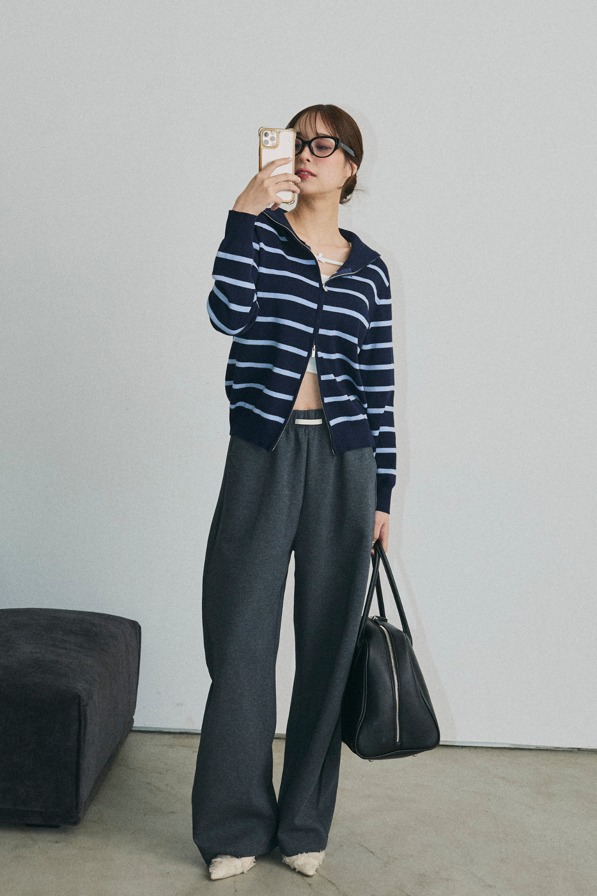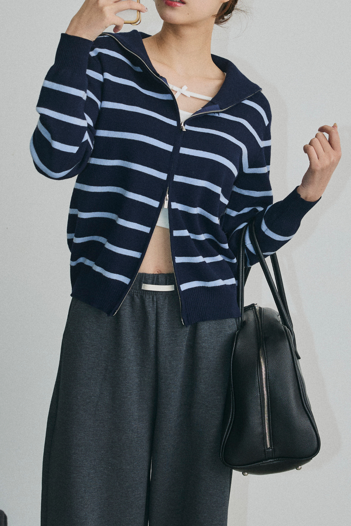 【デザイン】 洗練された印象のボーダーニットは、柔らかな落ち感が魅力です。立体的な襟元は、顔周りを華やかに演出し、袖口にはさりげないリブデザインが施されています。全体的にナチュラルな雰囲気を持ちながらも、端正さを感じさせる一枚です。ディテールにこだわった作りが、着る人の個性を引き立てます。