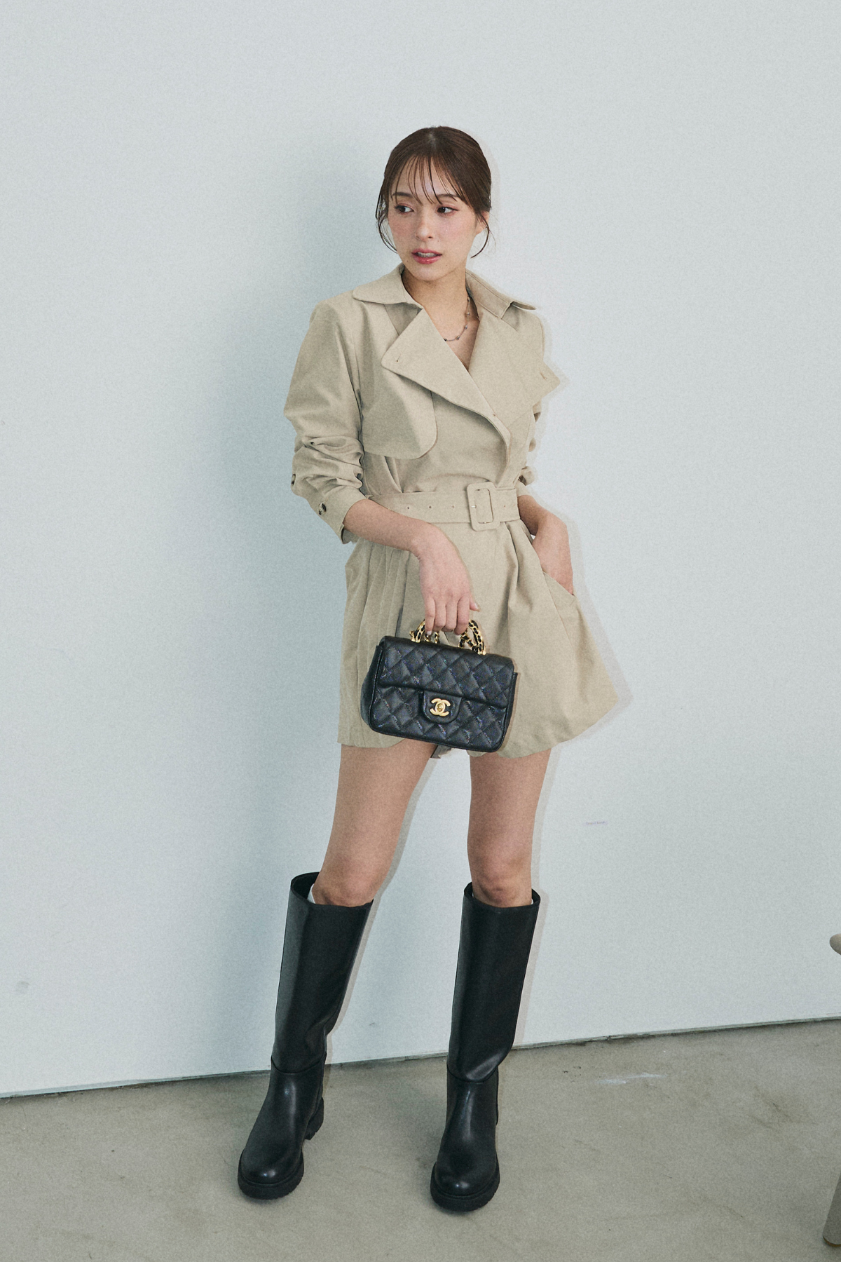【デザイン】トレンチコートのディテールを落とし込んだ、一枚でスタイリングが完成するトレンチライクオールインワン。