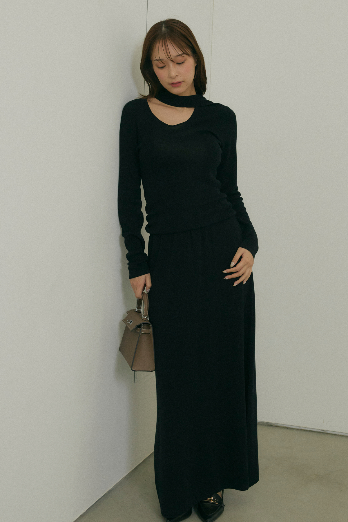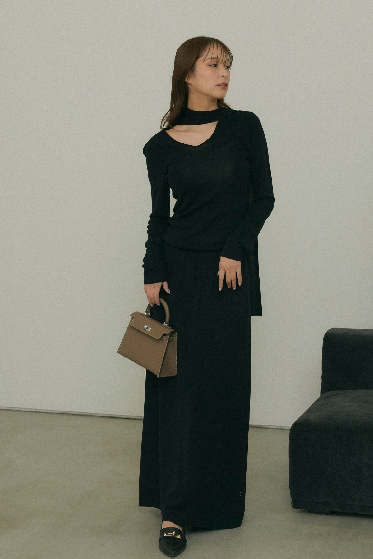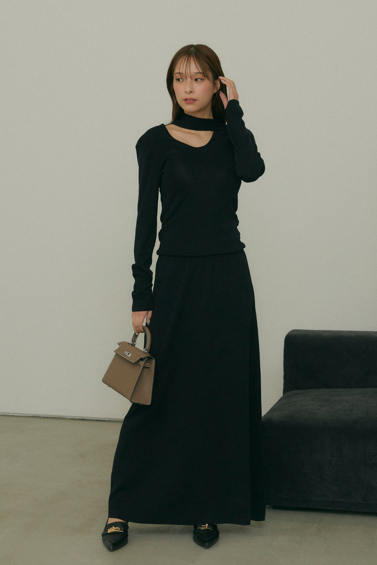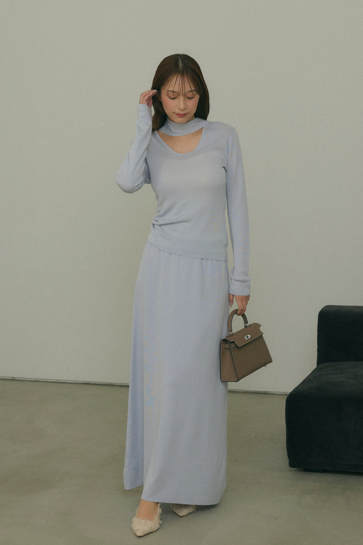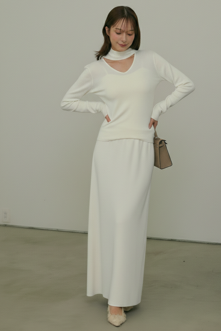 スフレタッチチョーカーニットと組み合わせるとセットアップになります。