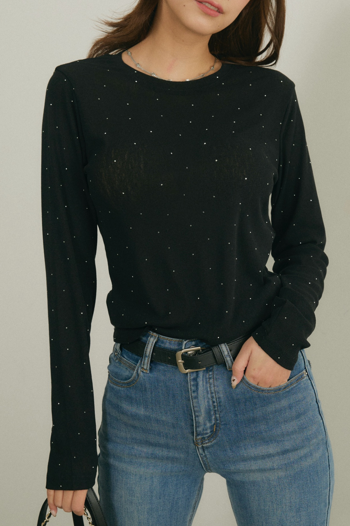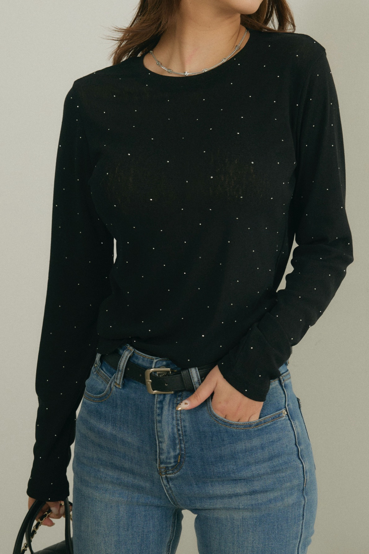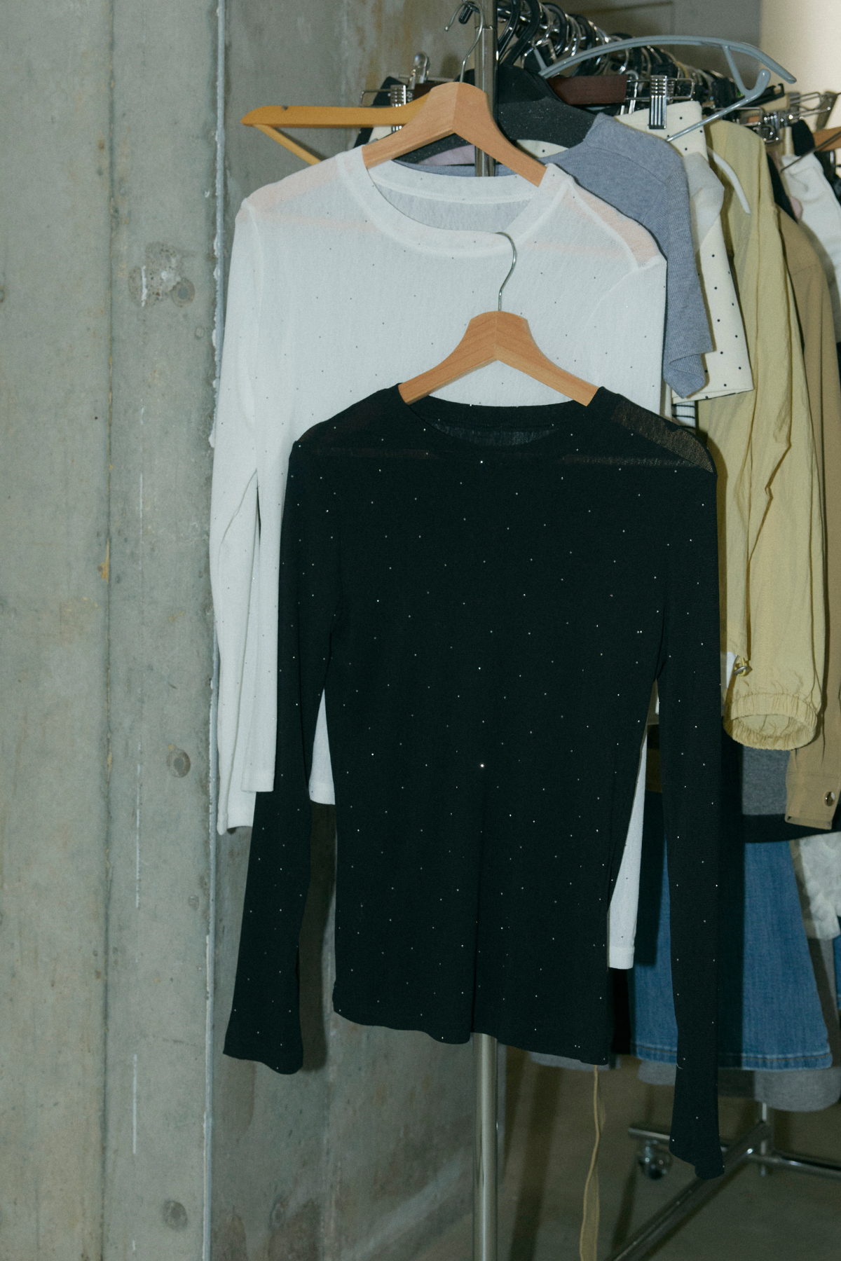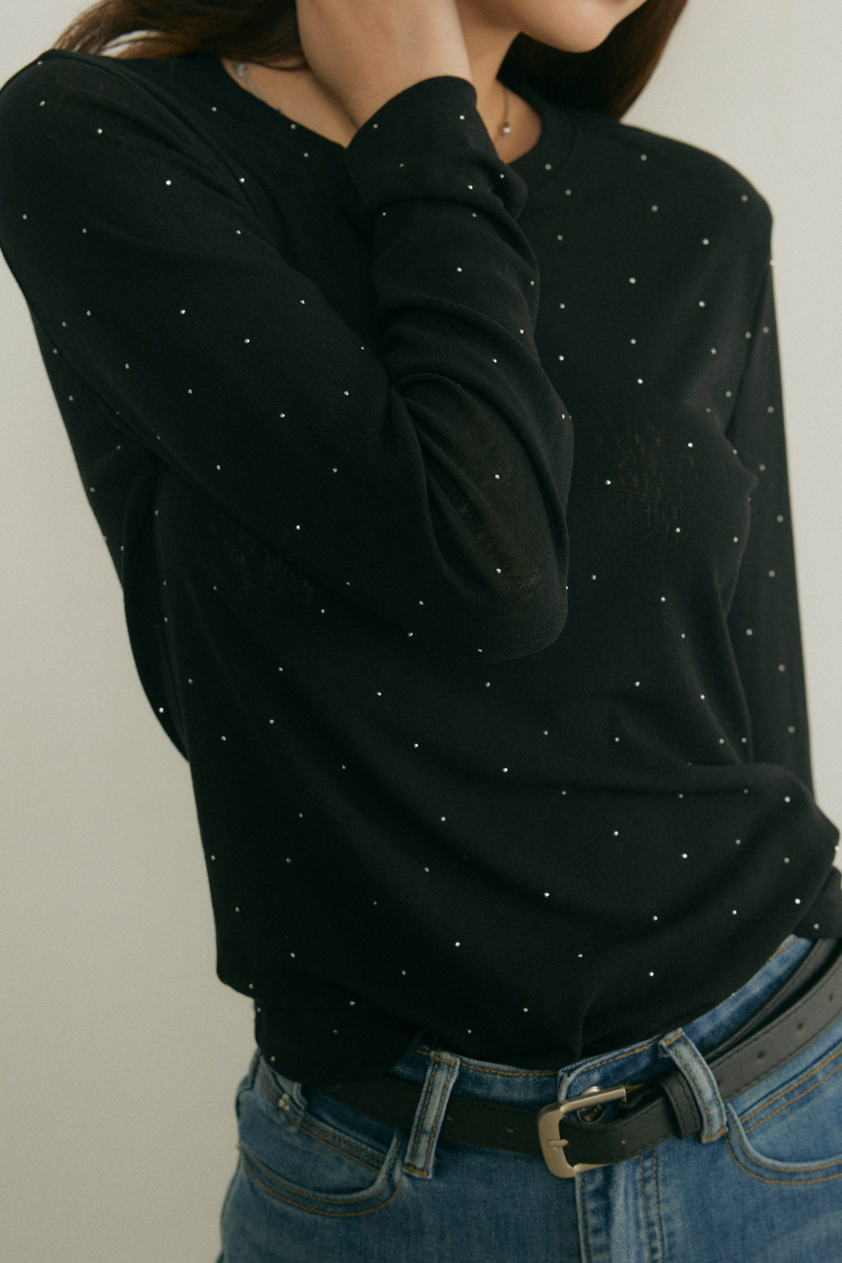 夜の街に映える、繊細なきらめき。グリッター・ロングスリーブトップス