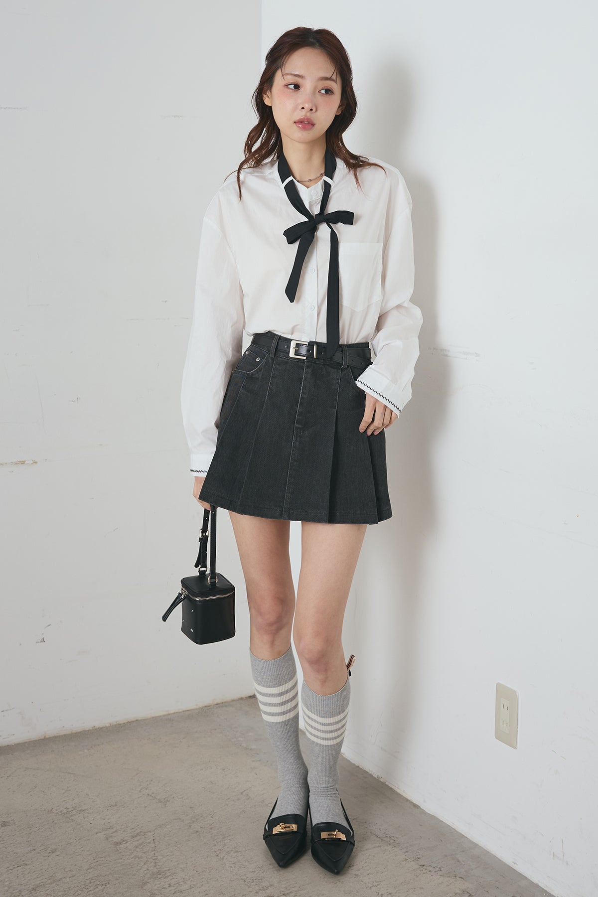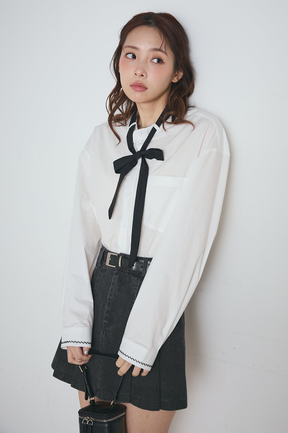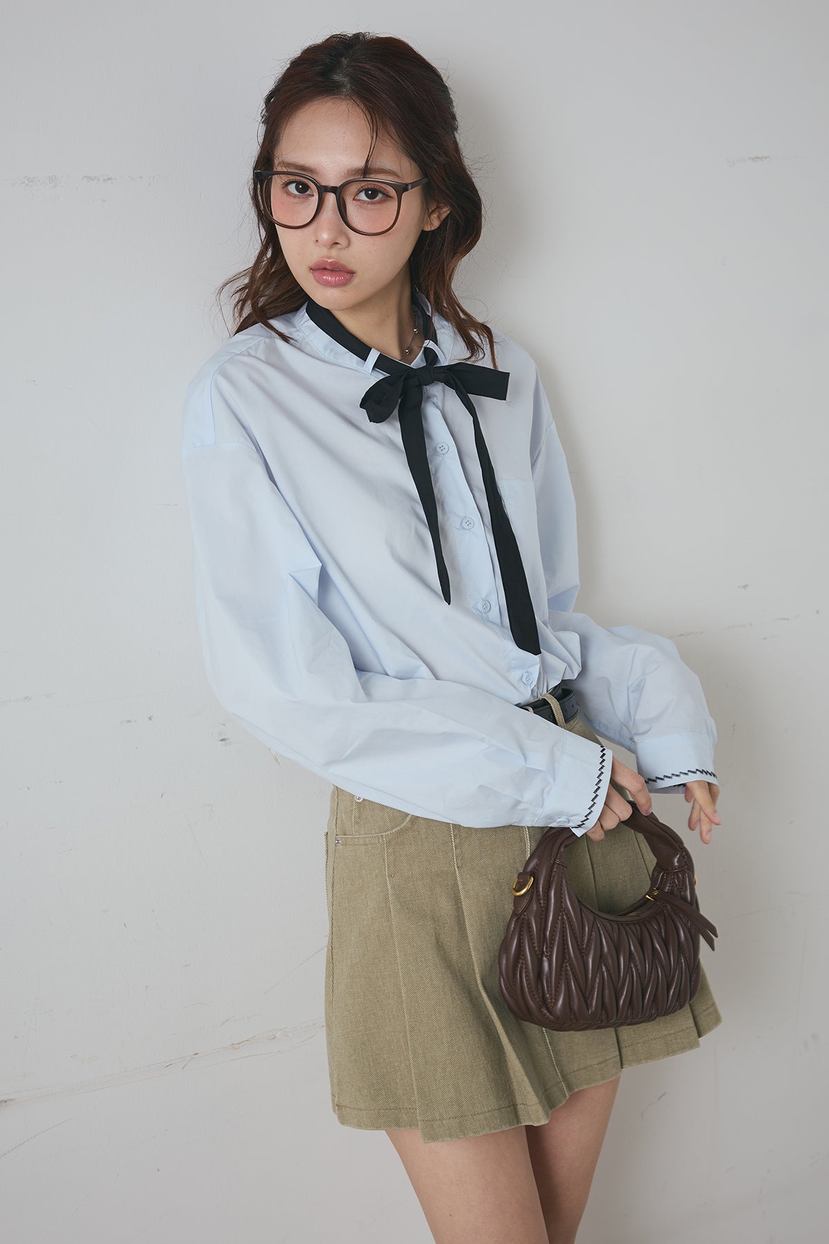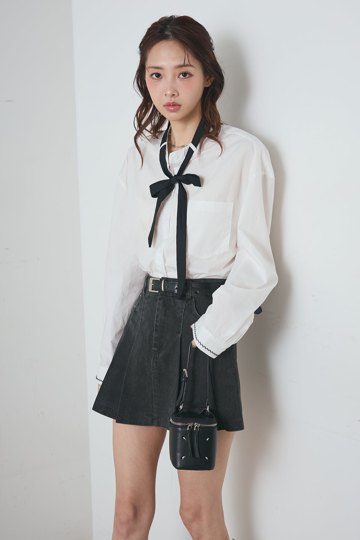 リボンタイクロップドシャツと組み合わせたコーデがおすすめ♡