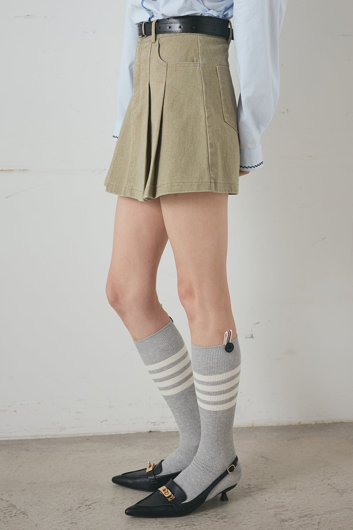 デニムプリーツミニスカート(ベルト付)