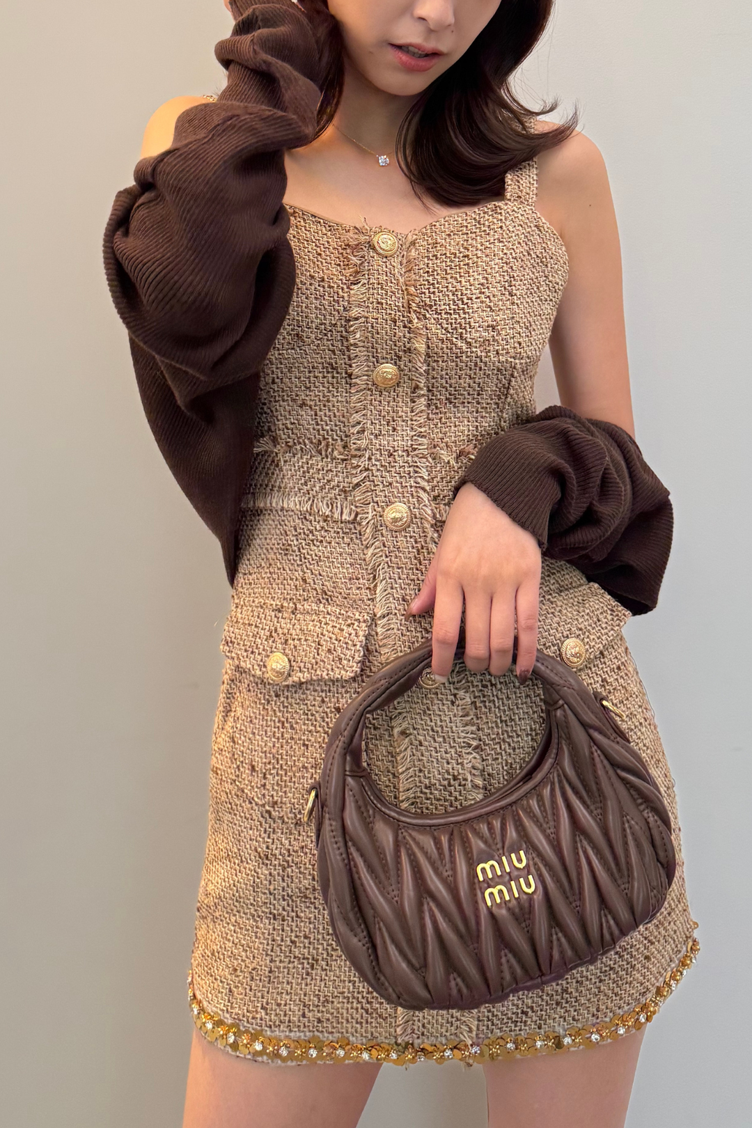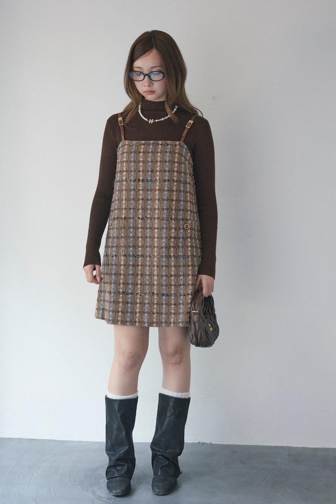 ニット付きツイードレザーベルトショルダーワンピースセット