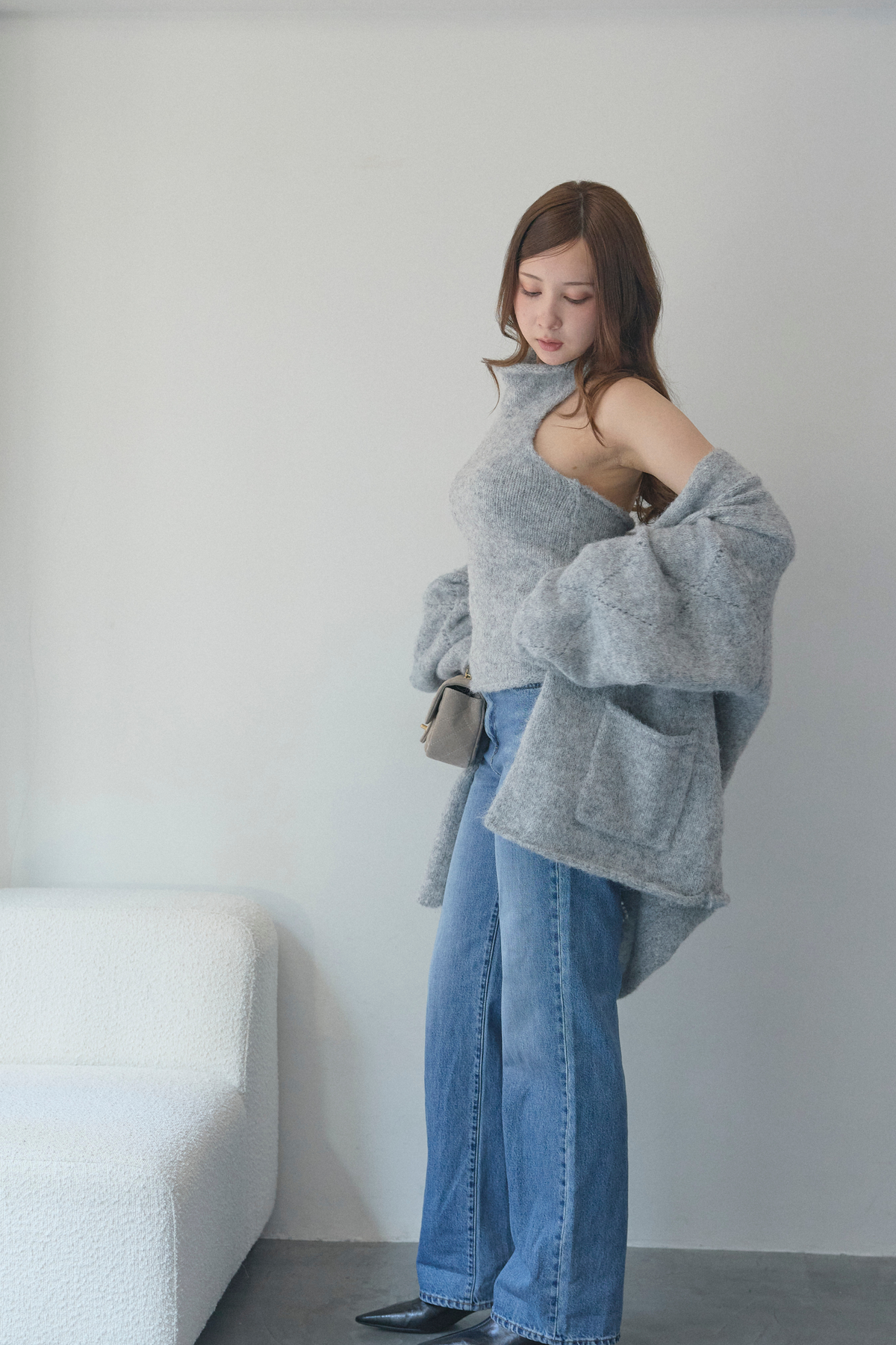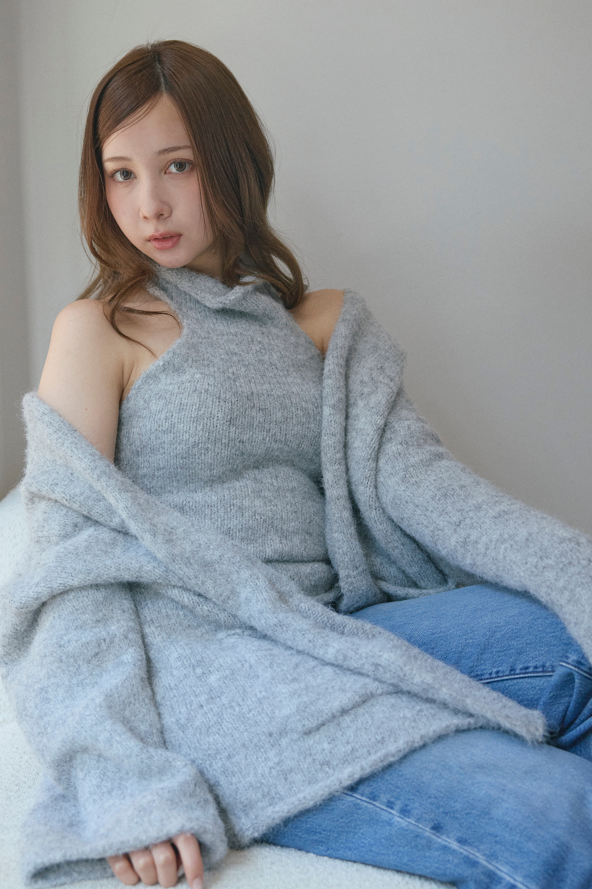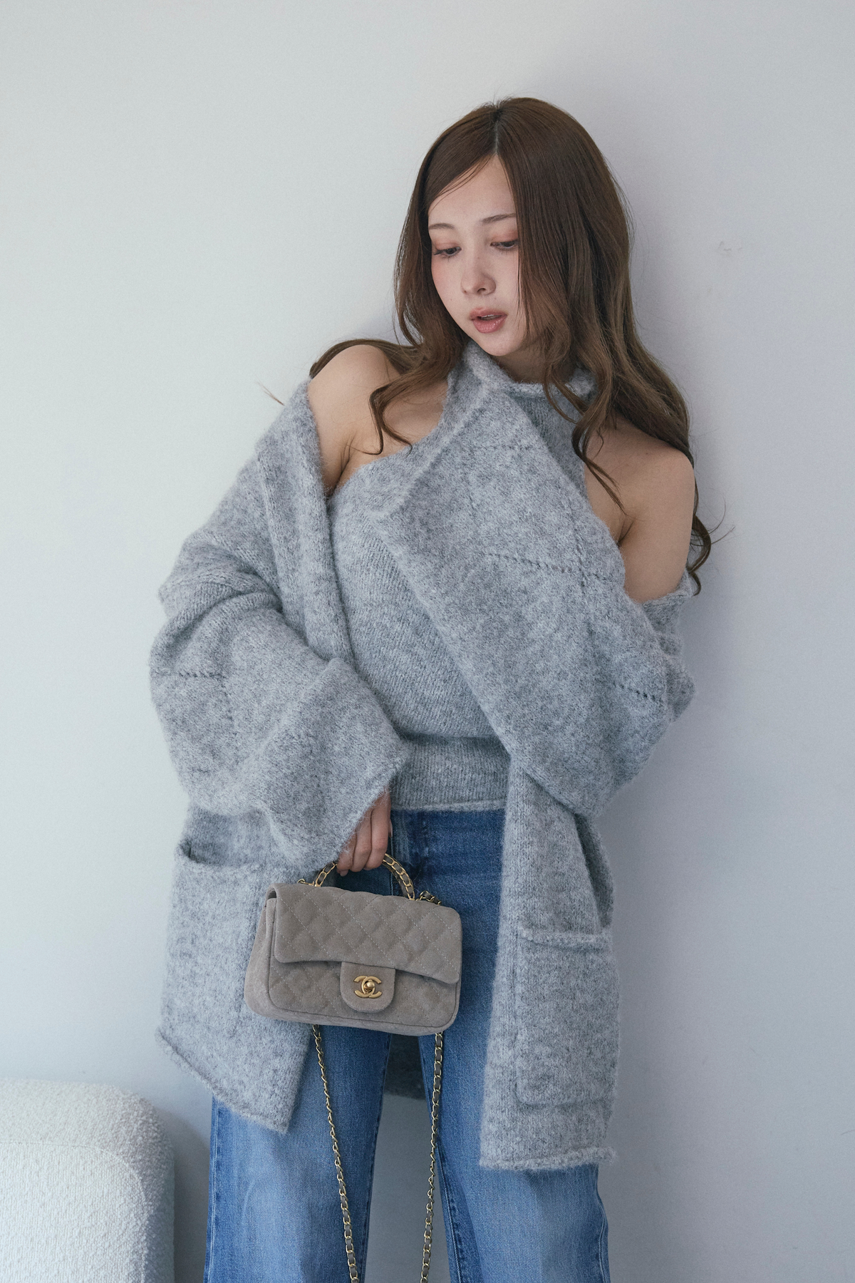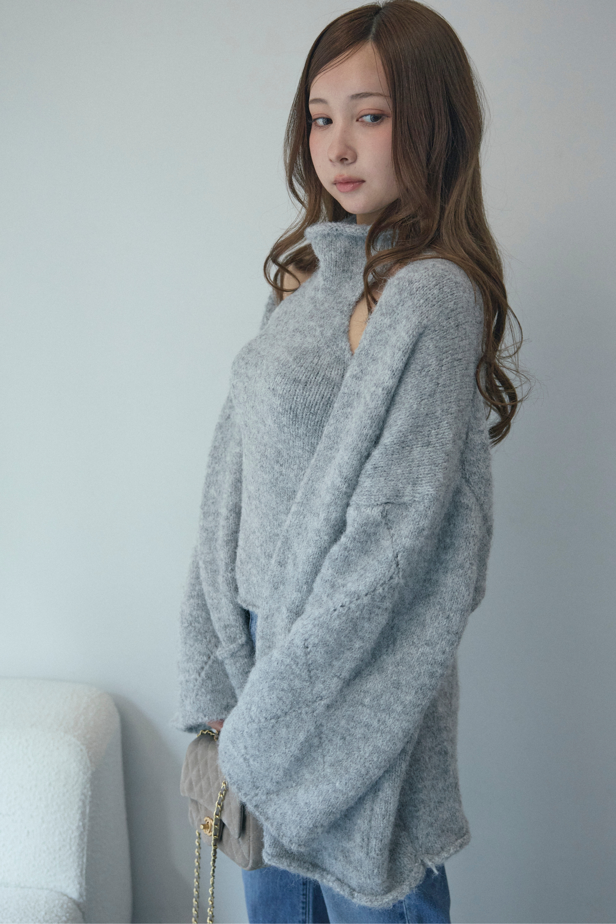 【デザイン】 柔らかな印象を与えるこのニットは、ゆったりとしたシルエットが特徴です。高めの襟元が首回りを美しく引き立て、長めの袖はリラックス感を演出します。裾に施されたさりげないディテールが、全体に華やかさをプラス。抜け感のあるデザインは、カジュアルな中にも上品さを感じさせる一着です。