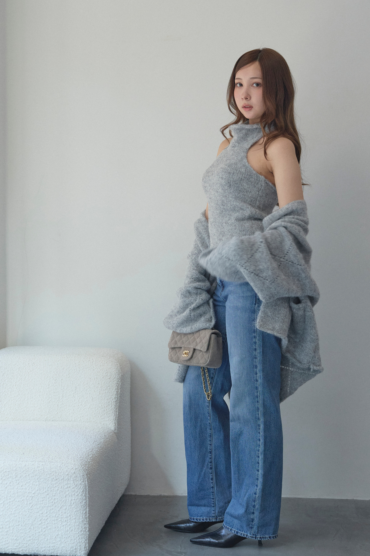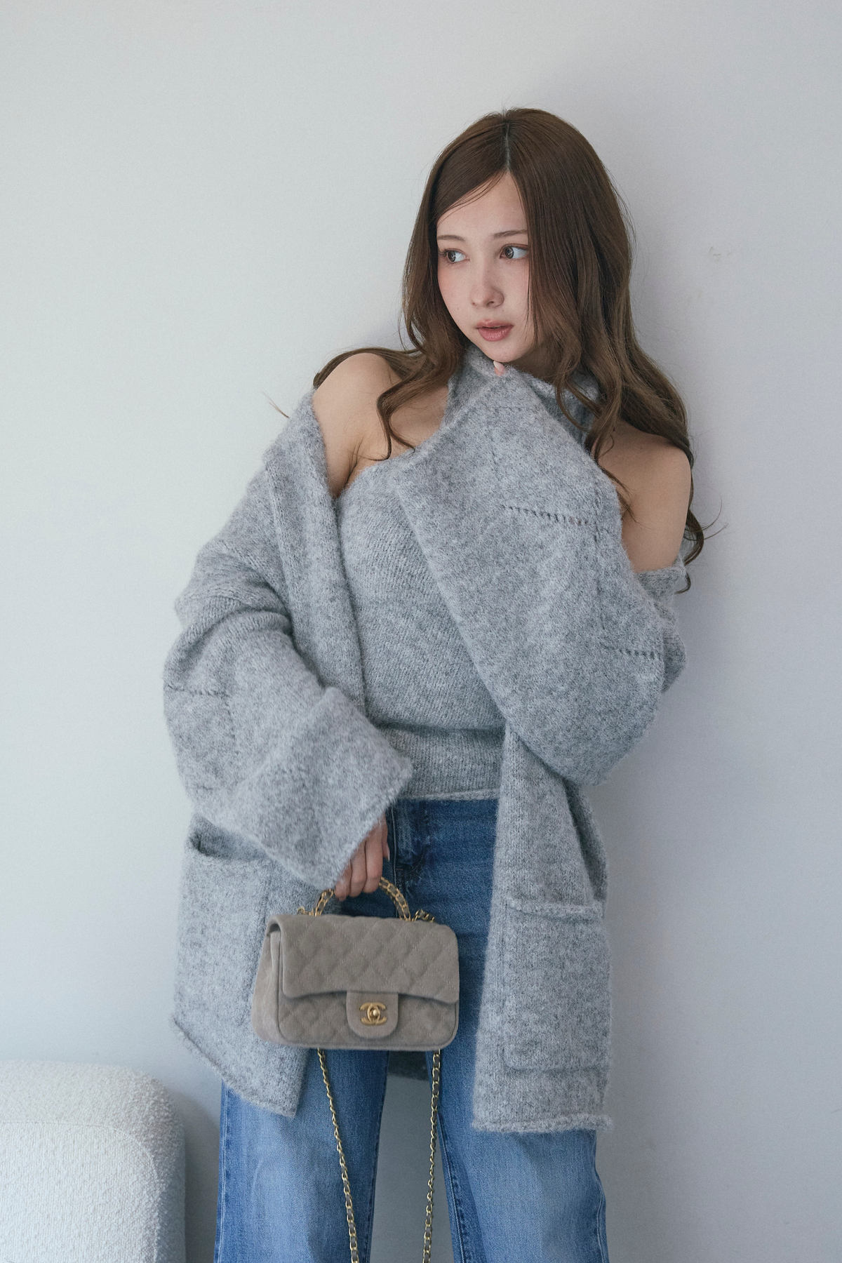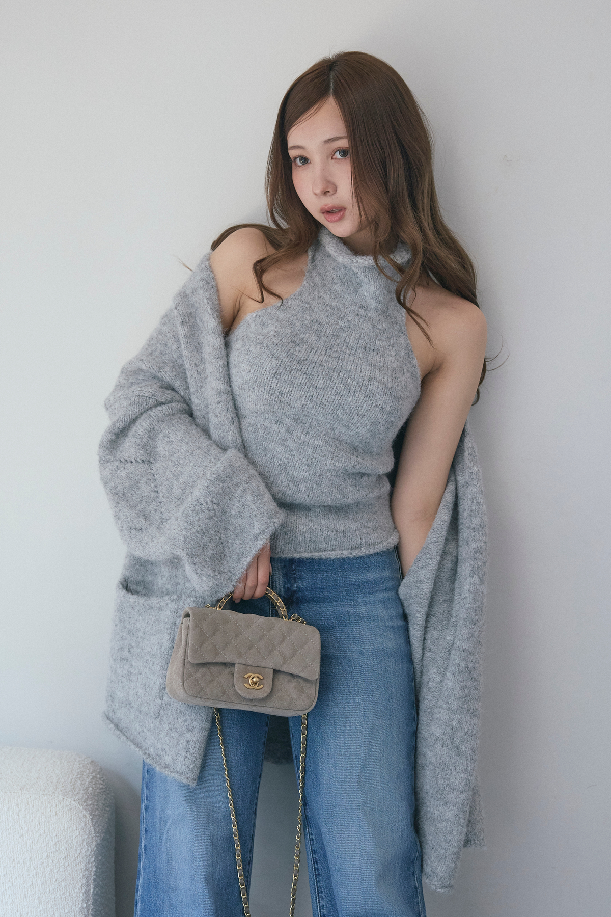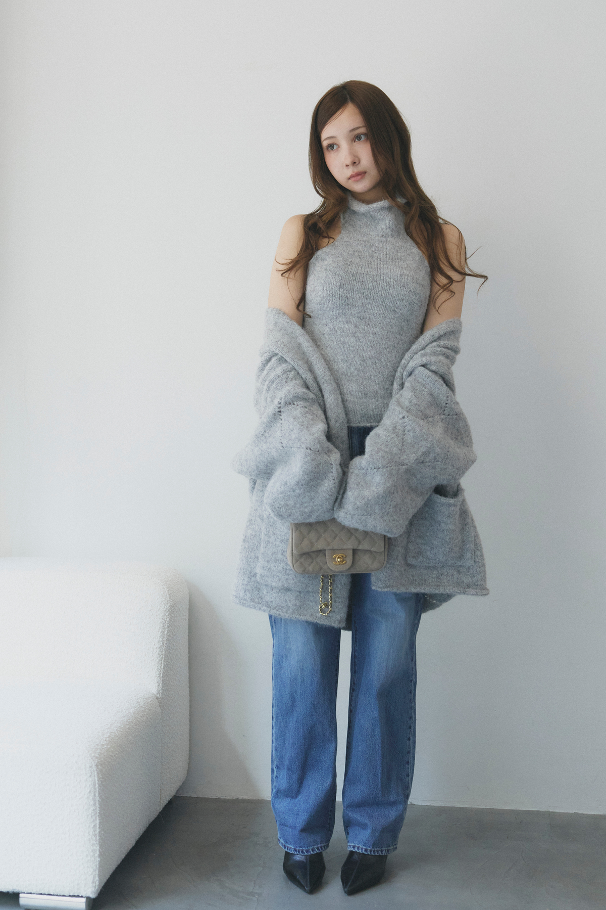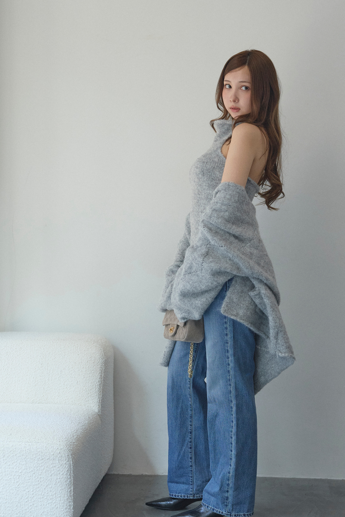 【デザイン】 柔らかな印象を与えるこのニットは、ゆったりとしたシルエットが特徴です。高めの襟元が首回りを美しく引き立て、長めの袖はリラックス感を演出します。裾に施されたさりげないディテールが、全体に華やかさをプラス。抜け感のあるデザインは、カジュアルな中にも上品さを感じさせる一着です。