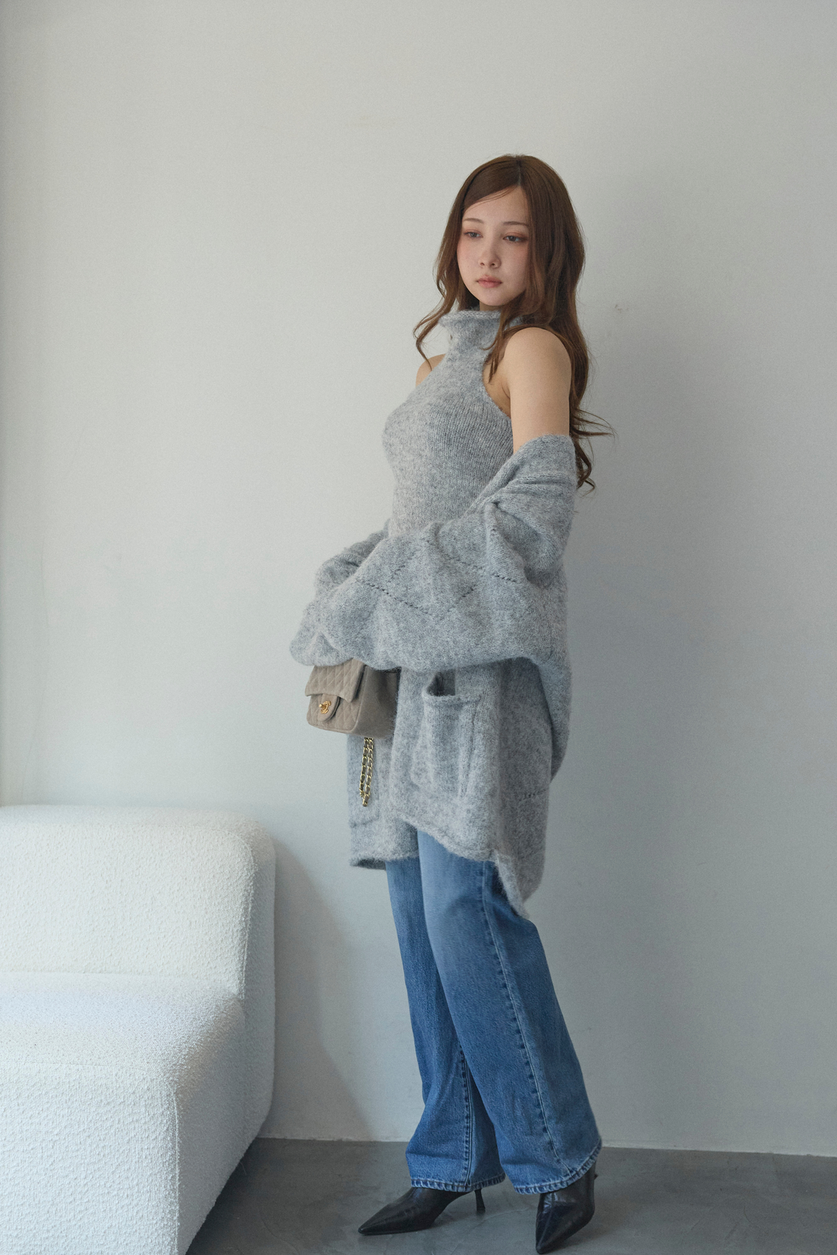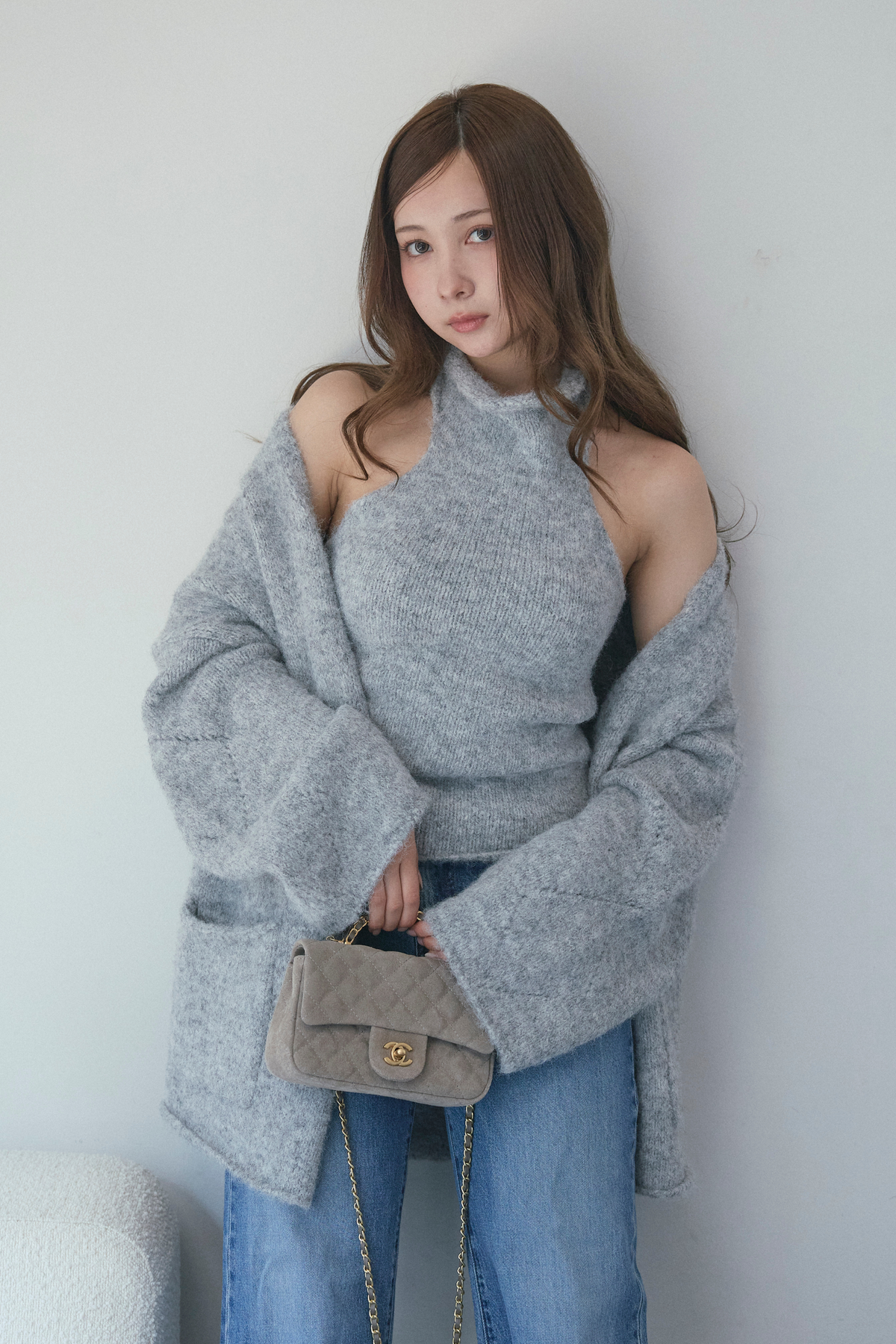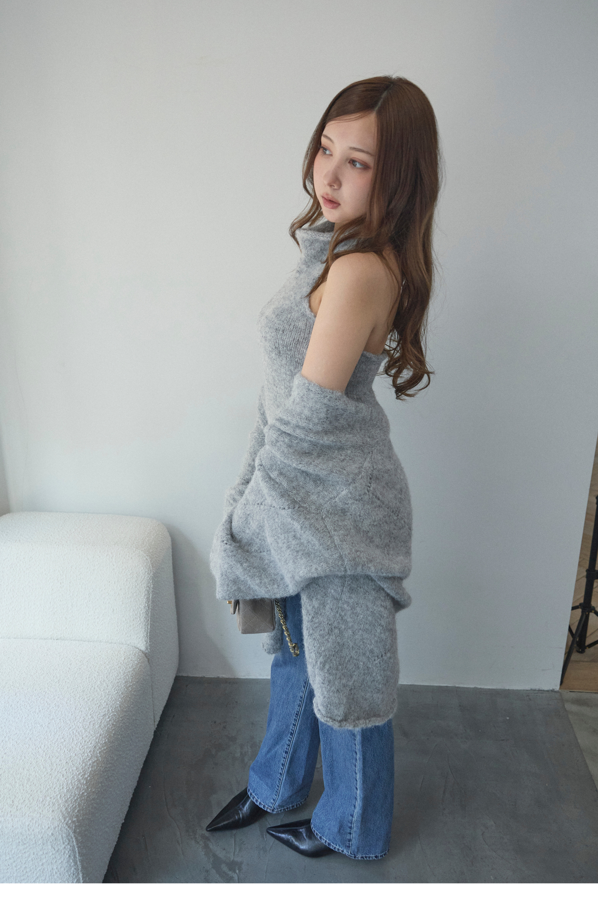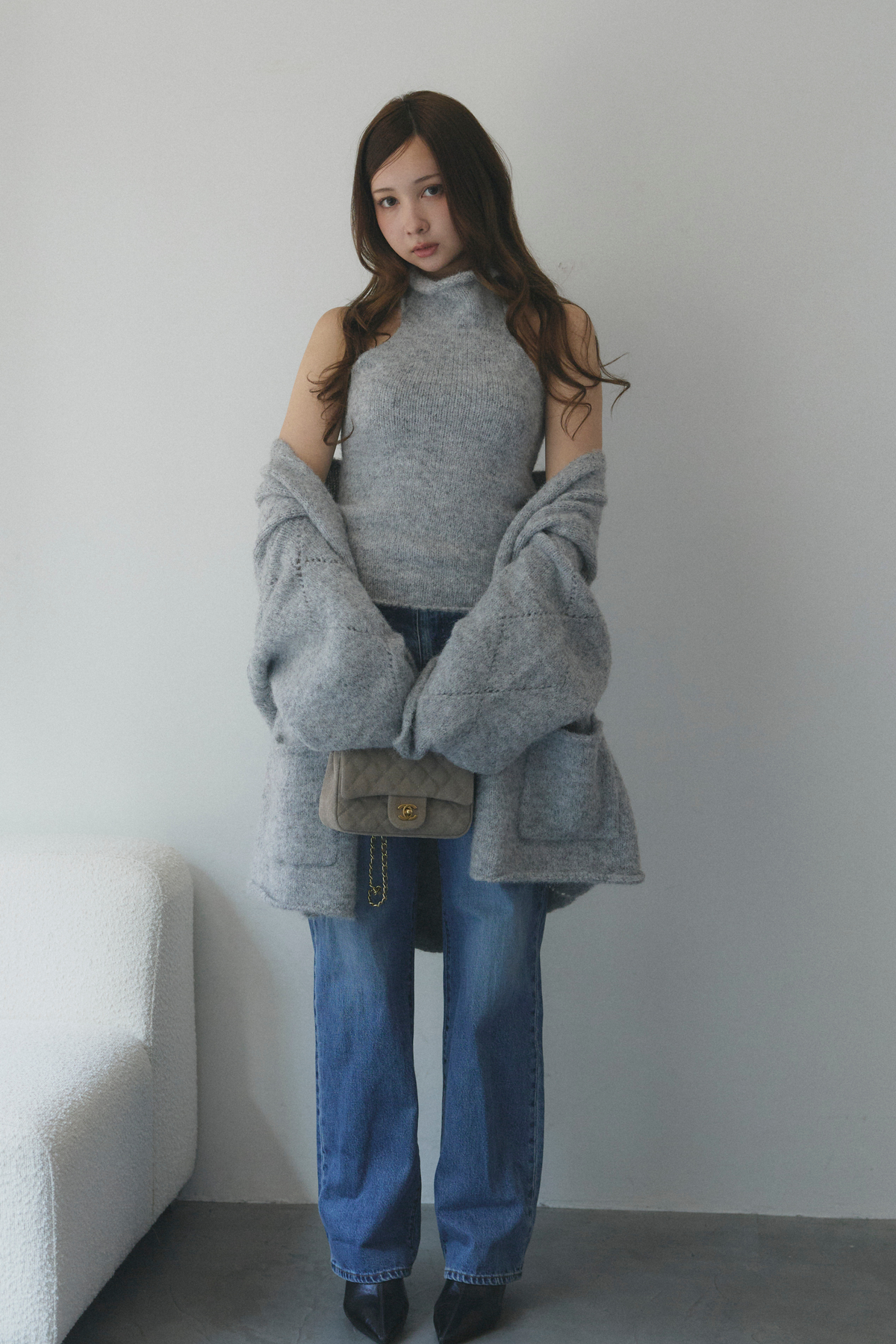 【デザイン】 柔らかな印象を与えるこのニットは、ゆったりとしたシルエットが特徴です。高めの襟元が首回りを美しく引き立て、長めの袖はリラックス感を演出します。裾に施されたさりげないディテールが、全体に華やかさをプラス。抜け感のあるデザインは、カジュアルな中にも上品さを感じさせる一着です。