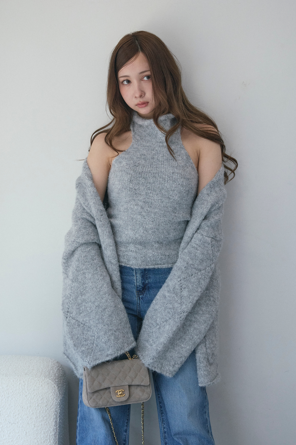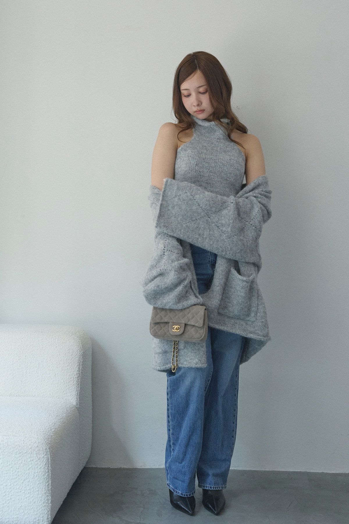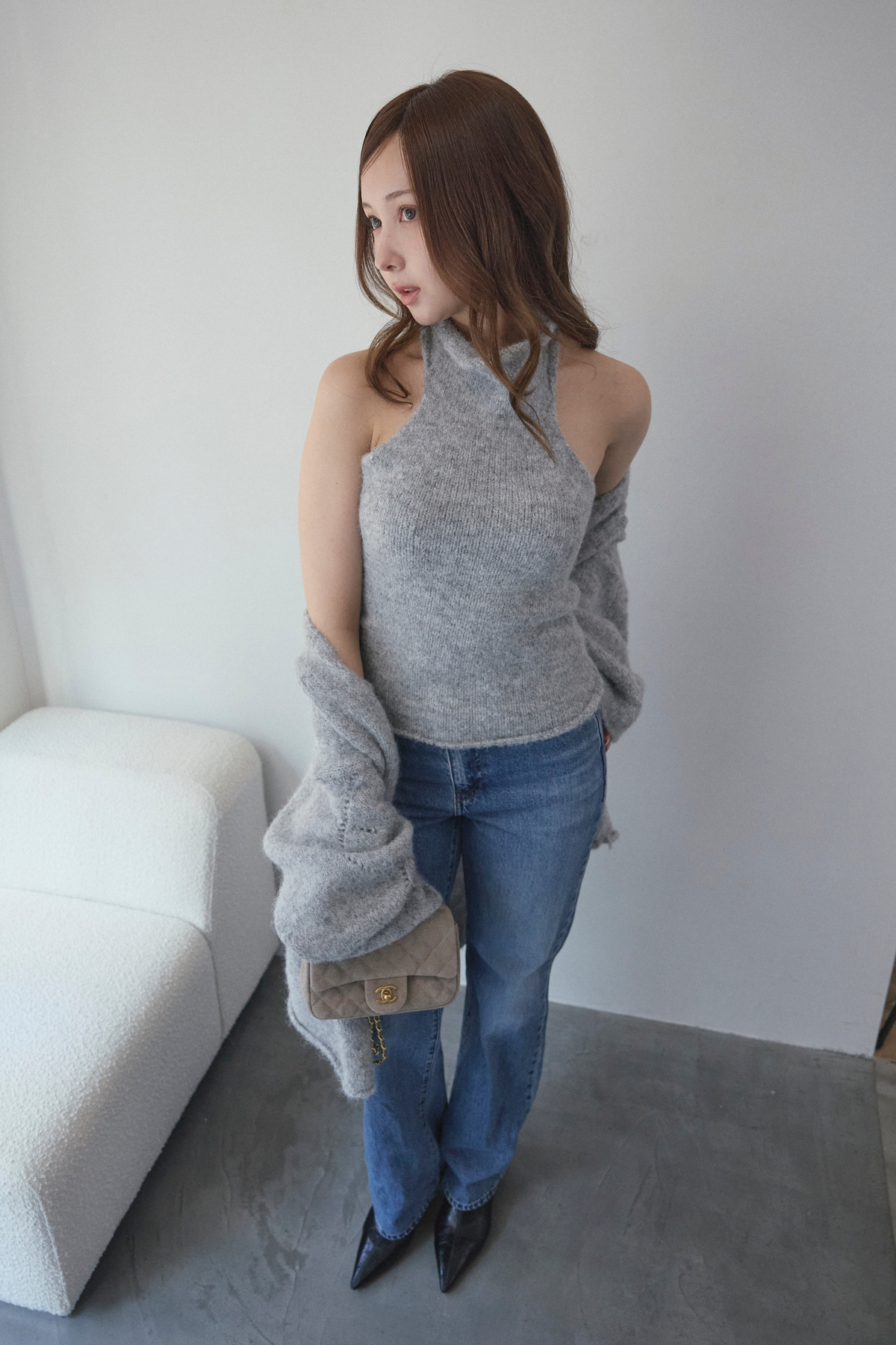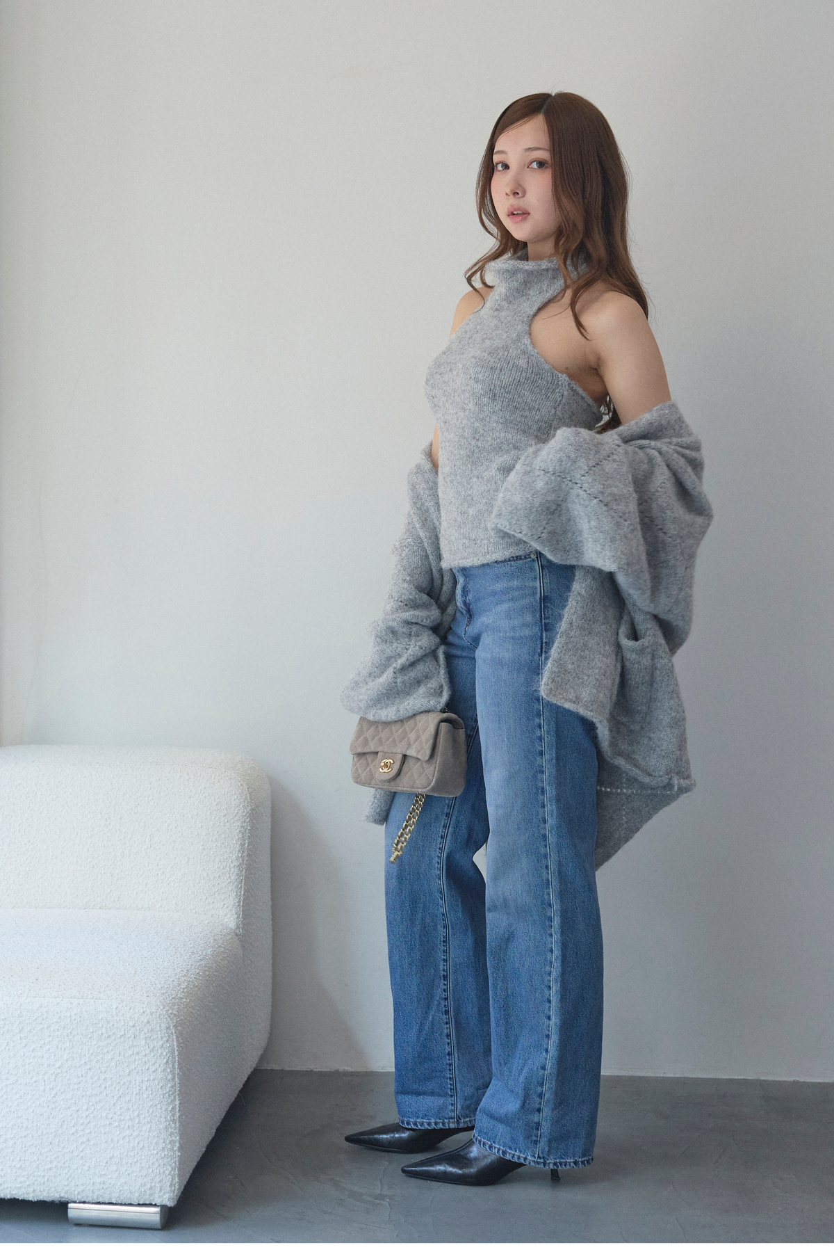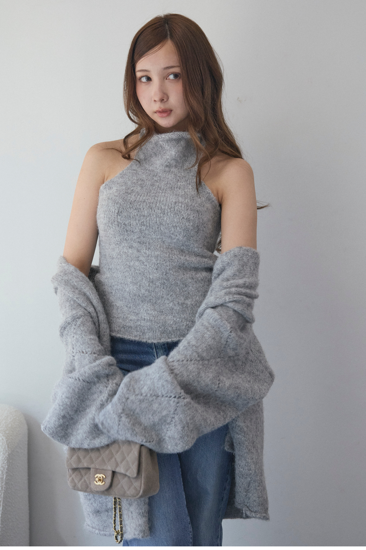 【デザイン】 柔らかな印象を与えるこのニットは、ゆったりとしたシルエットが特徴です。高めの襟元が首回りを美しく引き立て、長めの袖はリラックス感を演出します。裾に施されたさりげないディテールが、全体に華やかさをプラス。抜け感のあるデザインは、カジュアルな中にも上品さを感じさせる一着です。