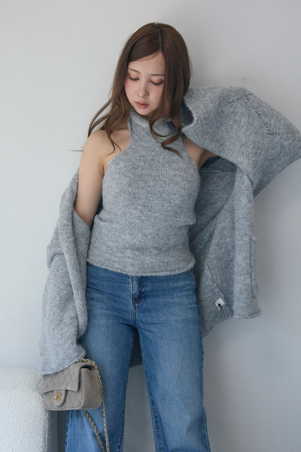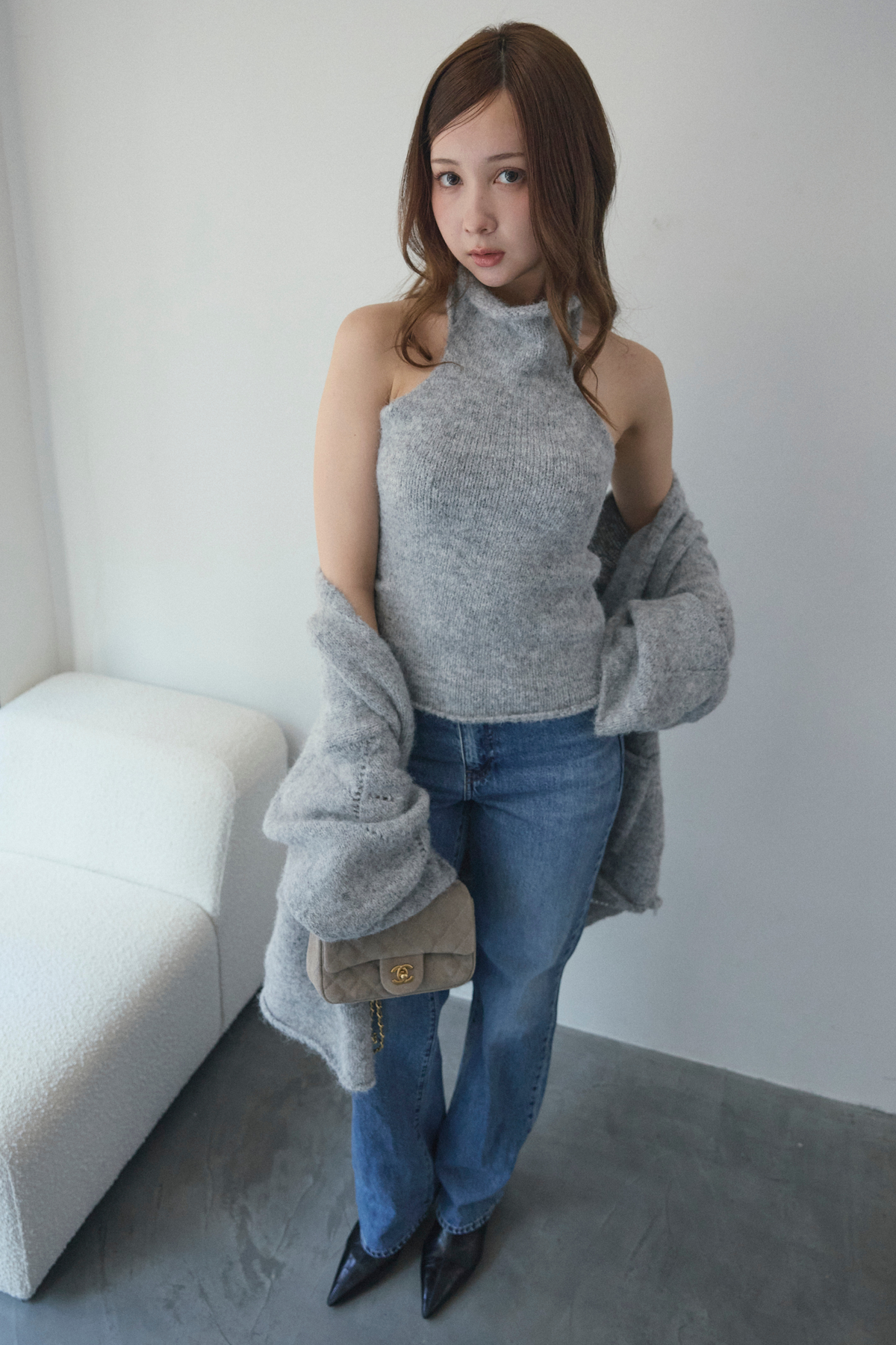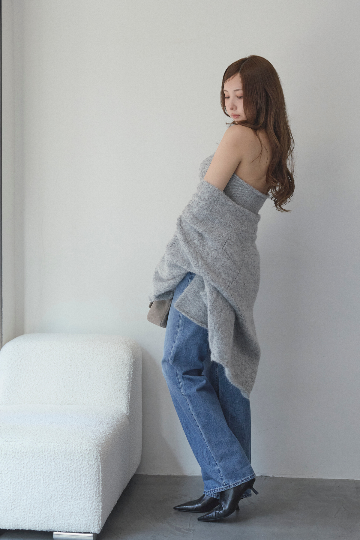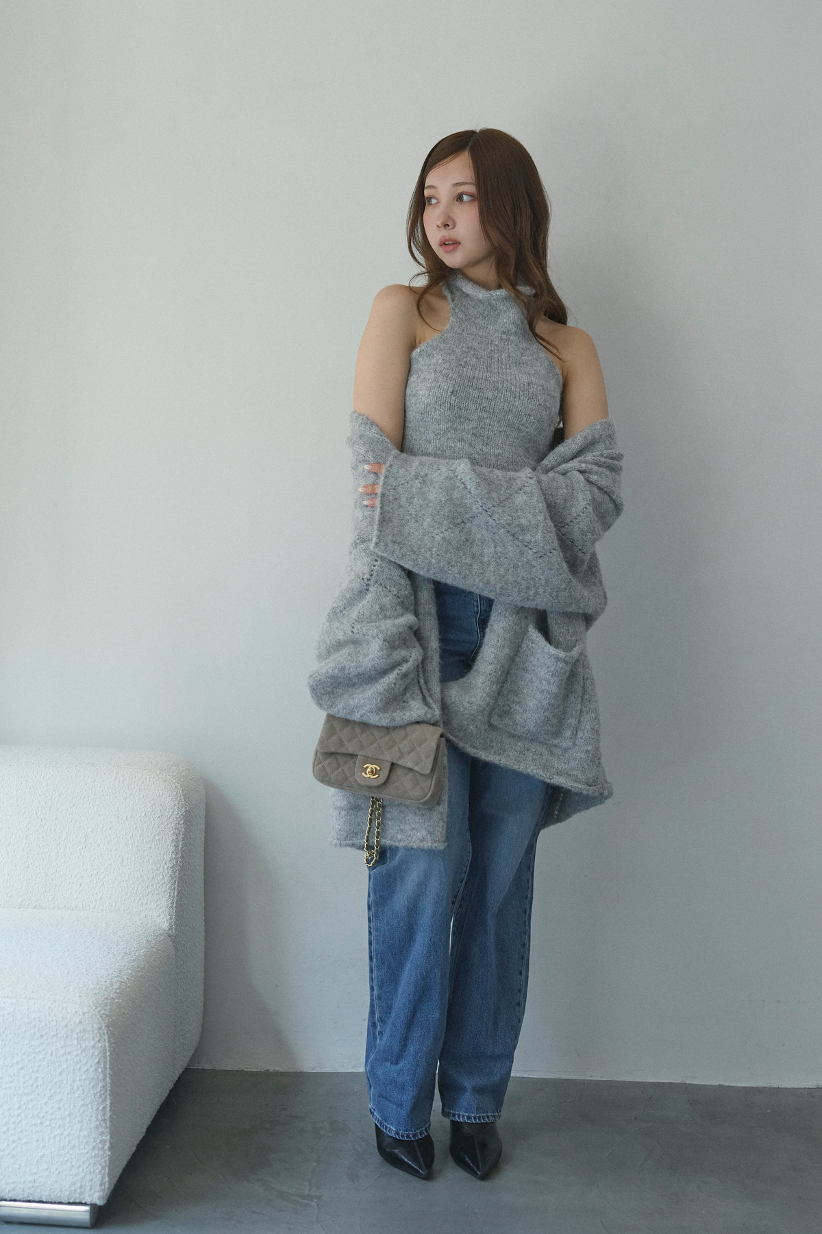 【デザイン】 柔らかな印象を与えるこのニットは、ゆったりとしたシルエットが特徴です。高めの襟元が首回りを美しく引き立て、長めの袖はリラックス感を演出します。裾に施されたさりげないディテールが、全体に華やかさをプラス。抜け感のあるデザインは、カジュアルな中にも上品さを感じさせる一着です。