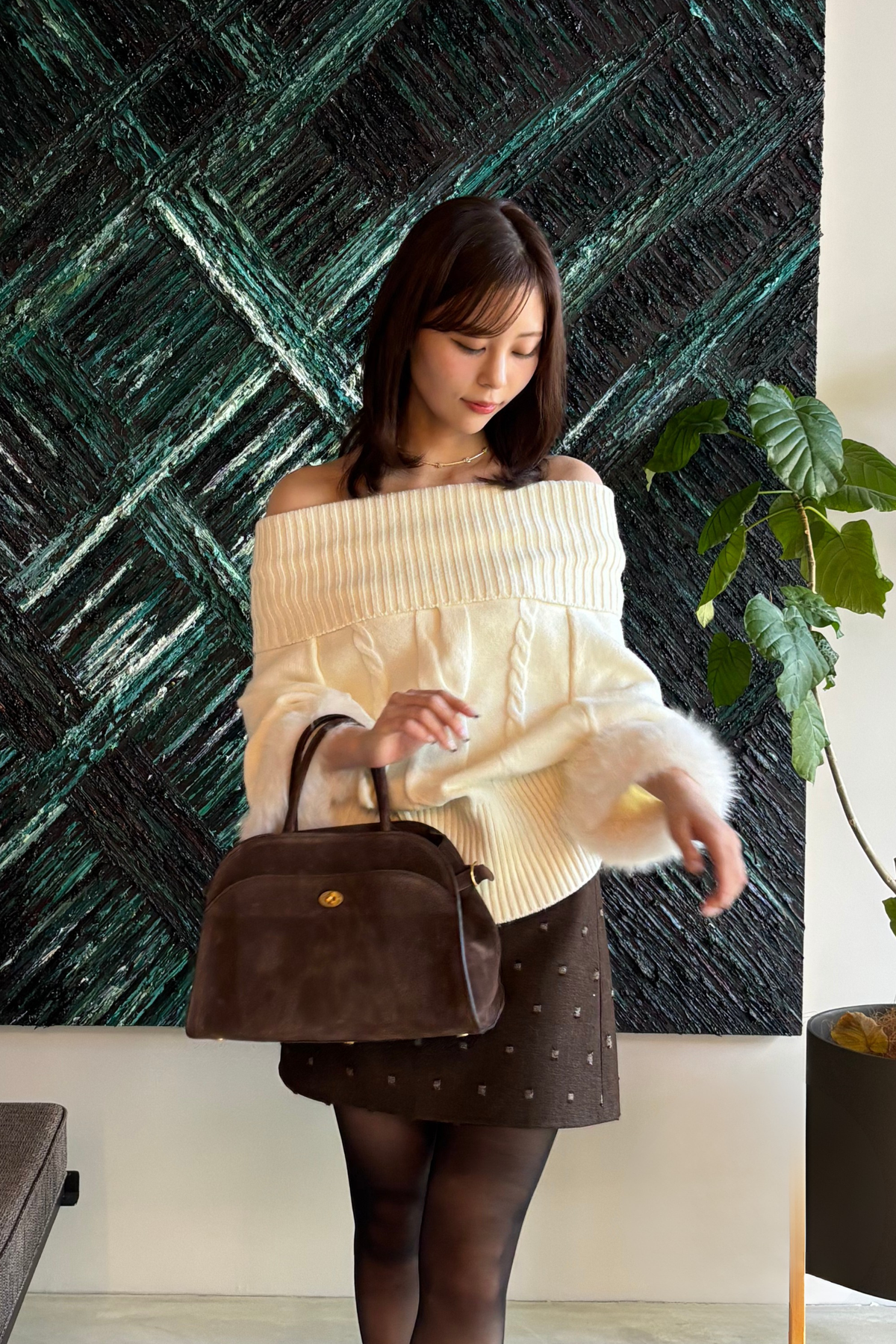 【コーディネートヒント】 デイリーシーンにぴったりなこのニットは、スリムなパンツやデニムと合わせることで、カジュアルながらも洗練された印象を演出します。アウターには軽やかなジャケットを羽織れば、季節感を意識したスタイルに。アクセサリーにはシンプルなゴールドのピアスや、クラッチバッグを選ぶと、全体が引き締まります。セットアップとしても活用できるので、単品使いで異なるコーディネートを楽しむのもおすすめです。